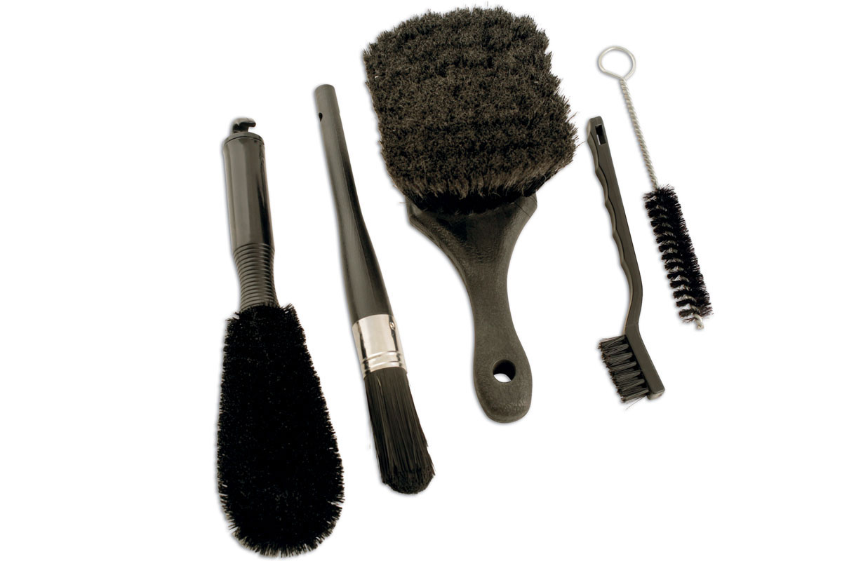 L'ensemble comprend cinq brosses essentielles pour nettoyer toutes les pièces de voiture, camionnette, quad, vélo, VTT, moto...