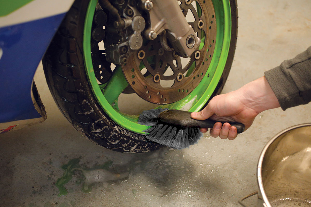 - une brosse à poils flexibles et tissés pour jantes et flexibles