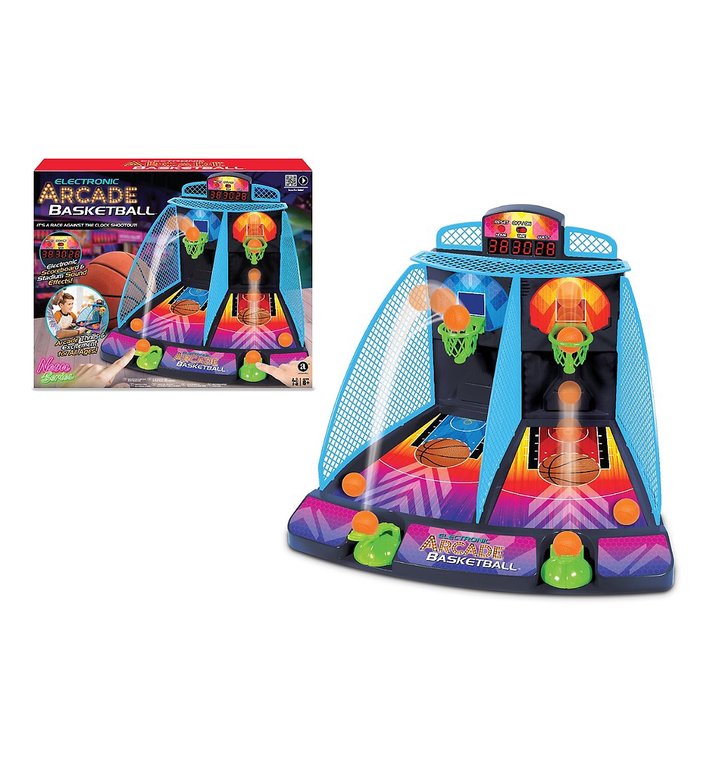 Préparez-vous à une course contre la montre haletante ! Avec ce Basket-ball Arcade Électronique, l'excitation du jeu d'arcade s'invite directement chez vous. L'installation est simple et rapide, pour que l'action commence en un clin d'œil !Ce jeu est idéal pour les enfants à partir de 6 ans et leur offre une compétition amicale et passionnante. L'ambiance d'un vrai stade : L'écran LED géant affiche un compte à rebours de 60 secondes et les scores des équipes "HOME" et "AWAY". Des effets sonores de stade accompagnent chaque tir pour une immersion totale. Des règles simples et un rythme effréné : Marquez autant de paniers que possible. Chaque panier vaut 2 points, mais attention... dans les 15 dernières secondes, une alarme retentit et les paniers valent 3 points ! Action de tir rapide : Les lanceurs de ballons à ressorts permettent une action de tir rapide et fluide.