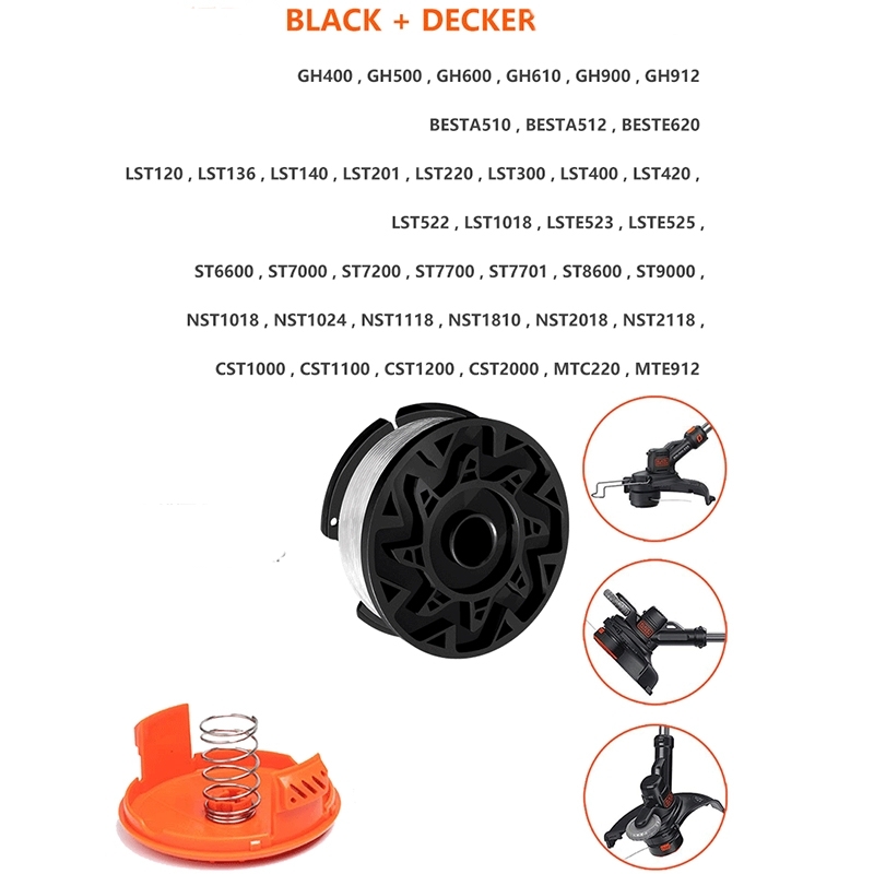 Large compatibilité : Ce jeu de bobines de fil de coupe est compatible avec une large gamme de coupe-bordures BLACK+DECKER, y compris les modèles GL280, GL301, GLC13, GLC2500, GLC3000, GLC3630L, GLC425, GL430, GL530, GL540, GL544, GL545, GL555, GL560. , GL570, GL580, GL4525, GL5028, GLC1423L, GLC1825L, GLC1825N, GH400, GH500, GH600, GH610, GH900, GH912BESTA510, BESTA512, BESTE620LST120, LST136, LST140, , LST220, LST300, LST400, LST420, LST522, LST1018, LSTE523 , LSTE525, ST6600, ST7000, ST7200, ST7700, ST7701, ST8600, ST9000, NST1018, NST1024, NST1118, NST1810, NST2018, NST2118, CST1000, CST1100, CST1200, CST2000, 20 et MTE912.