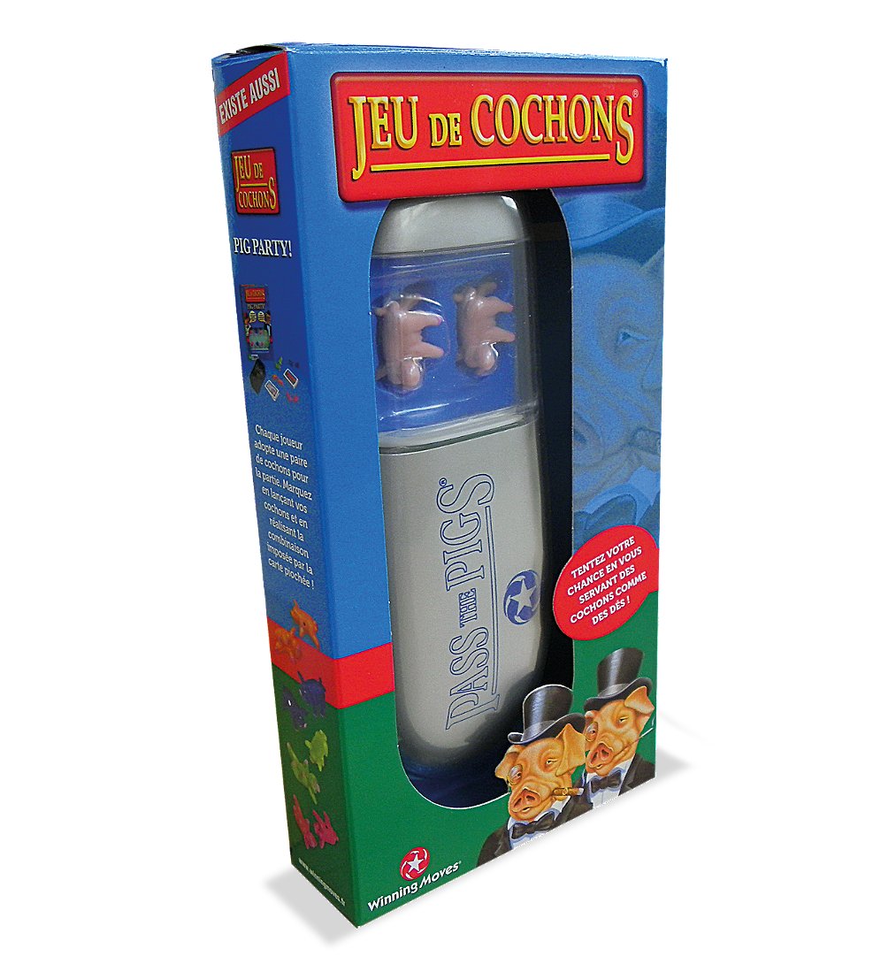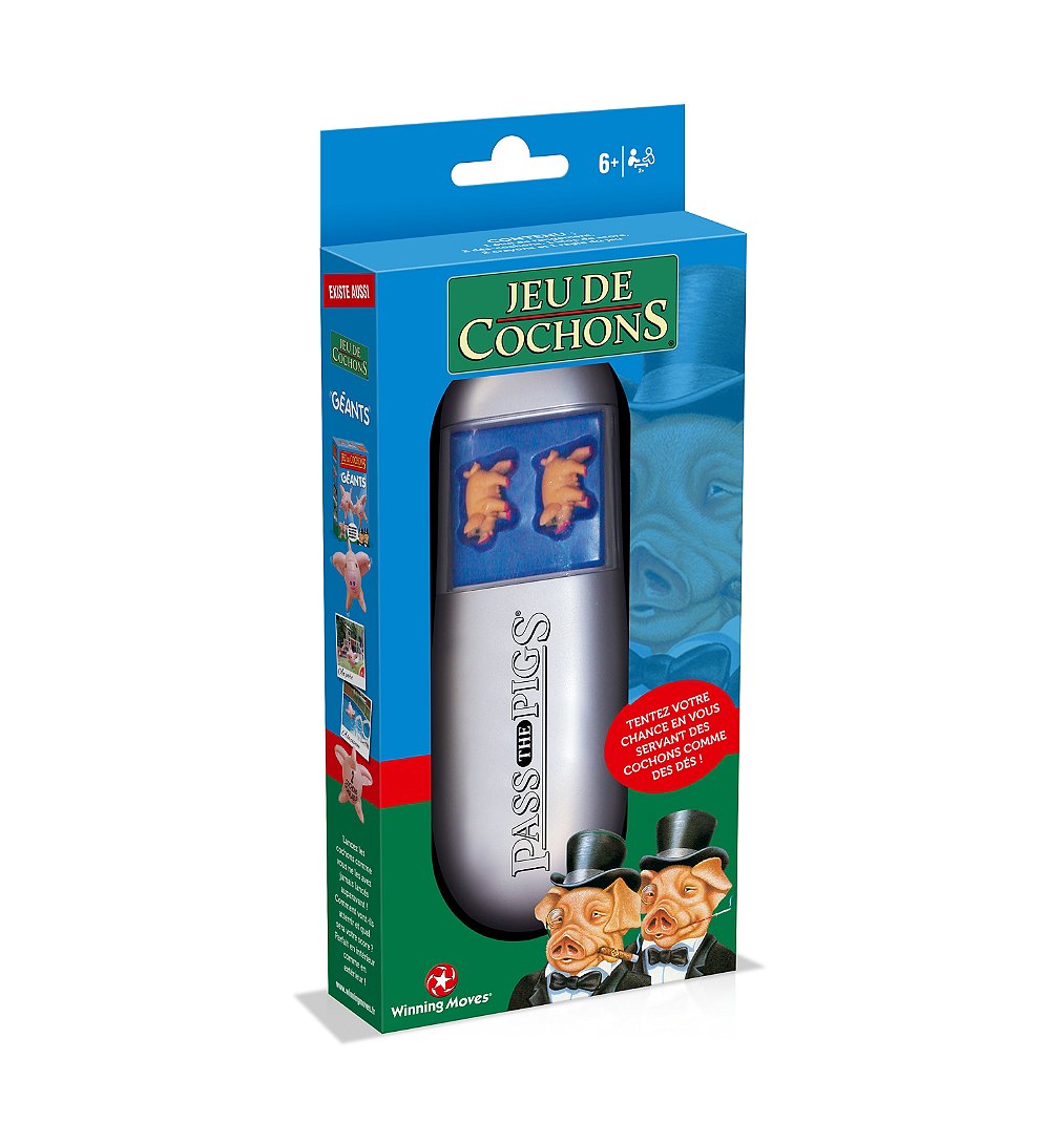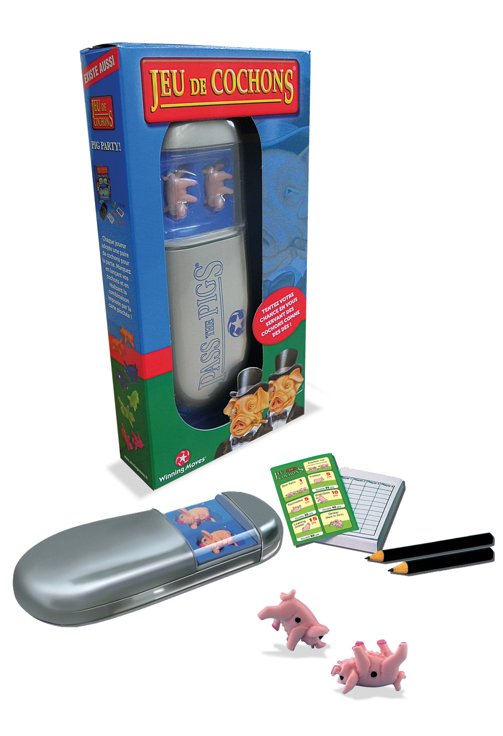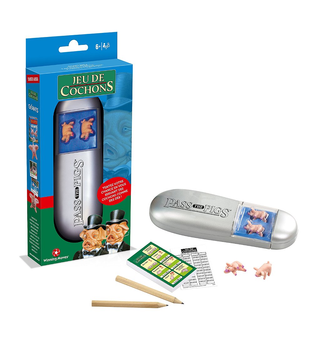 Jeu traditionnel où les joueurs se servent des cochons comme d'un dé ! Lancez les cochons et marquez autant de points que possible en un tour. Mais attention, ne soyez pas trop gourmand, ou vous pourrez tout perdre ! Le premier joueur qui marque 100 points est le vainqueur.