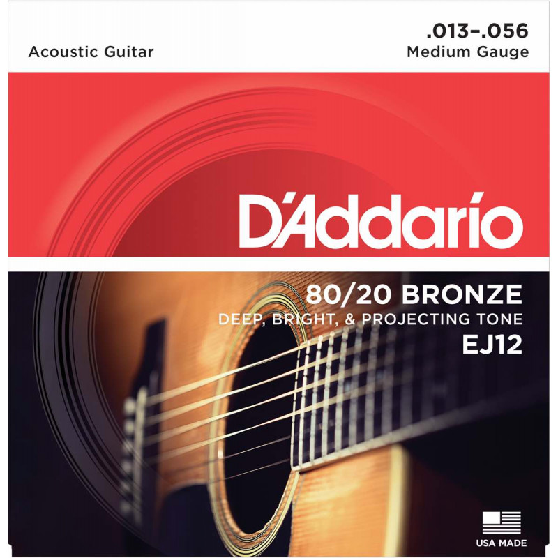 | Libellé | Jeu de cordes guitare acoustique D'Addario EJ12 medium 80/20 Bronze |