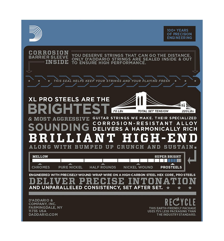 Les jeux Prosteels sont les jeux les plus brillants et les plus magnétiques des jeux D'Addario. Déjà bien réputés en cordes pour basses, ces nouveaux jeux électriques délivrent des harmoniques riches grâce à leur alliage spécifique.