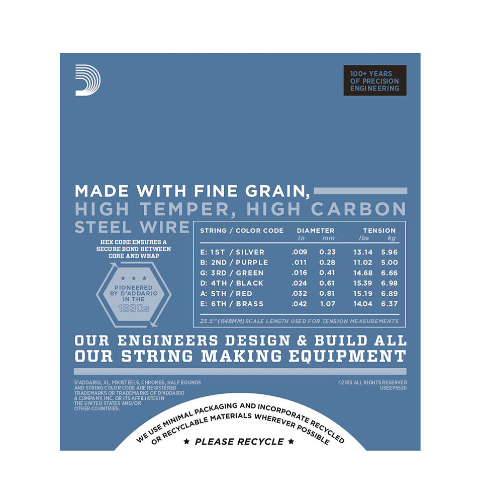 | Libellé | Jeu de cordes guitare électrique D'addario EPS520 Prosteels Super Light |