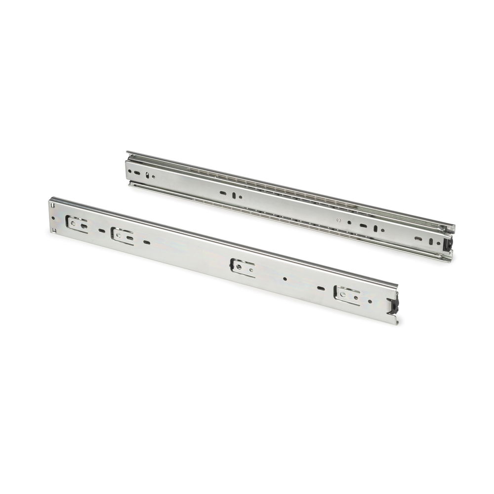 Coulisses à sortie totale pour tiroirs, dont les billes de haute qualité permettent un glissement doux et silencieux. Elles sont dôtées également d'une grande capacité de charge, pouvant supporter jusqu’à 68 kg par tiroir.