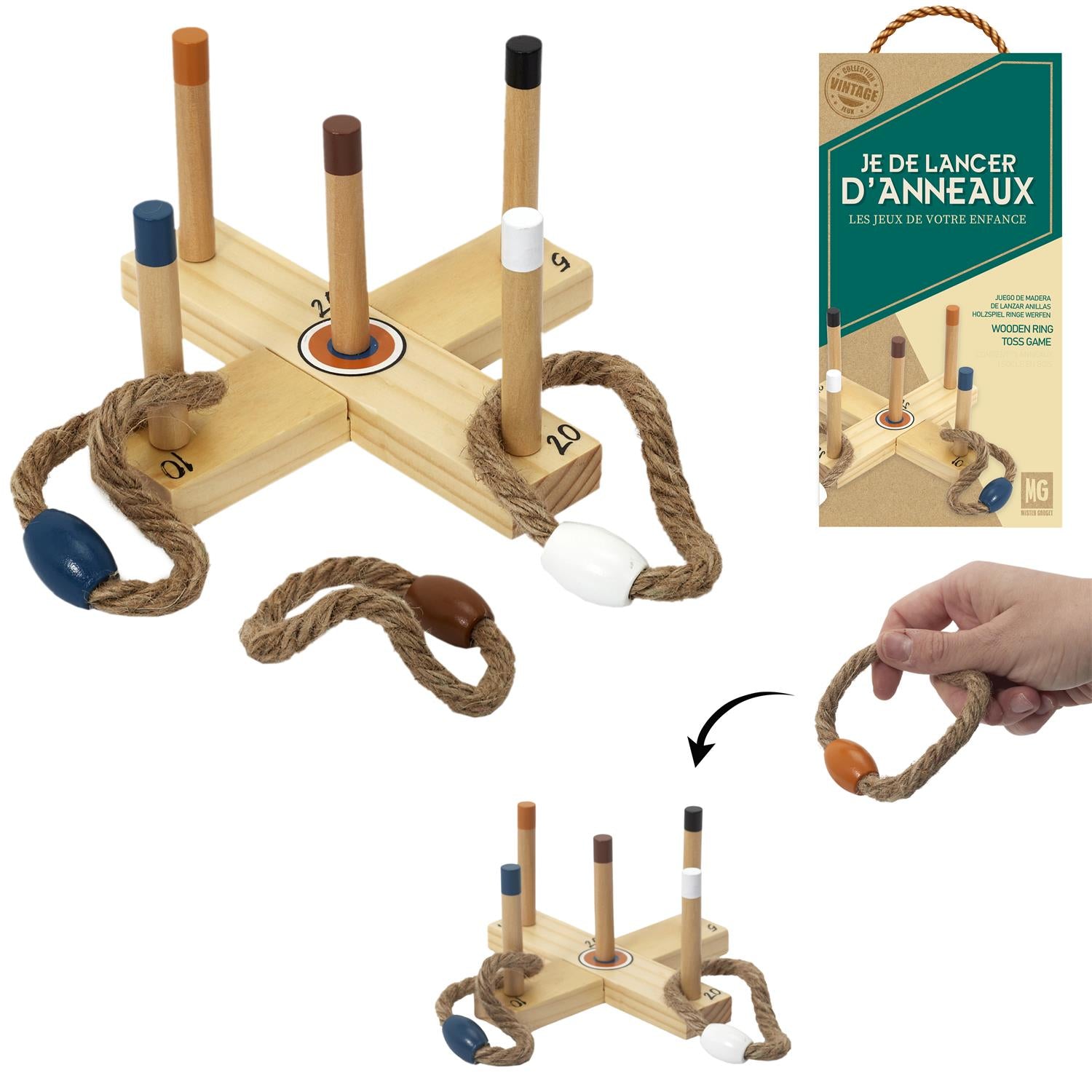 - Enrichissez vos moments de convivialité grâce à ce jeu en bois de lancer anneaux !