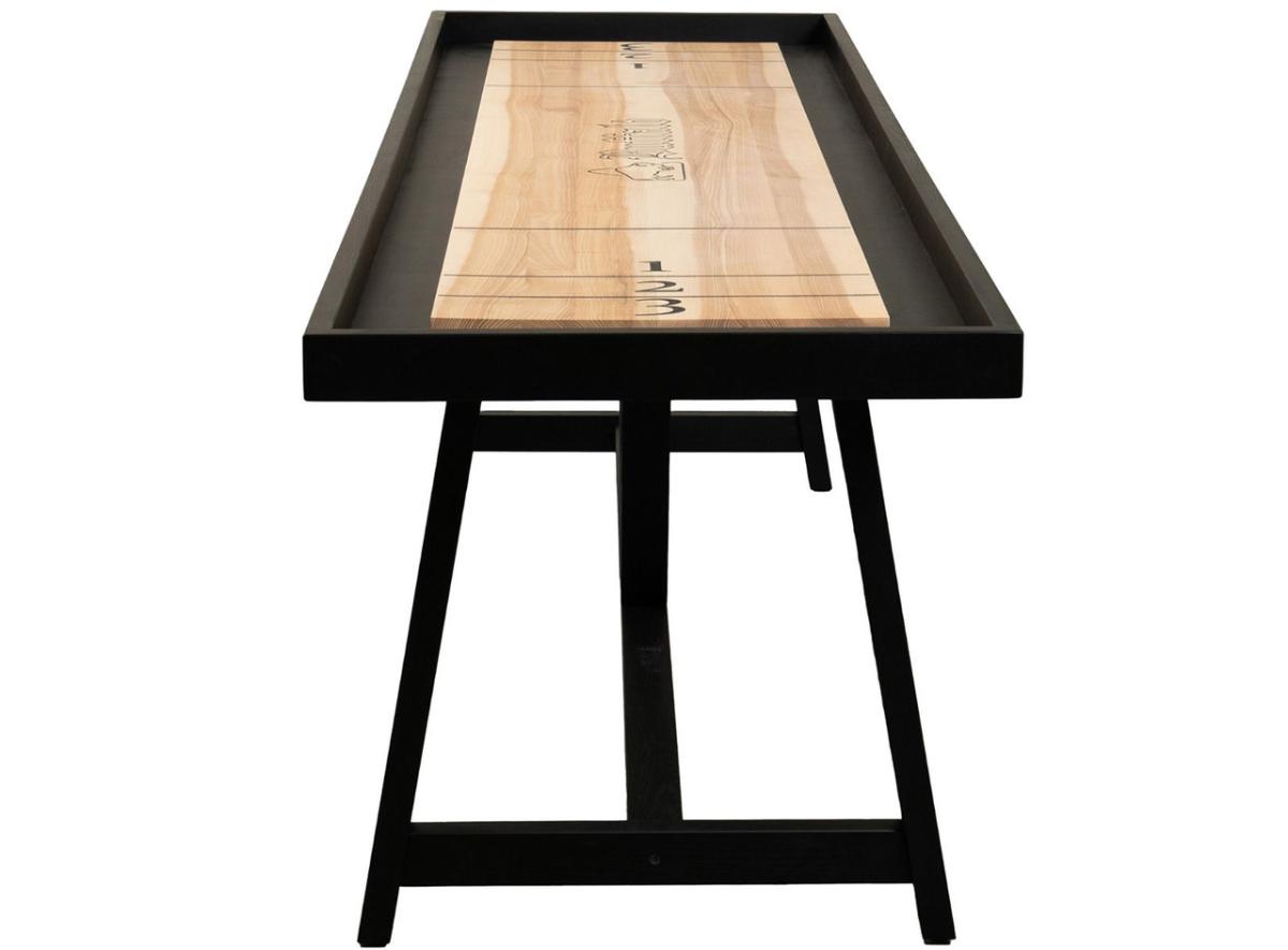 Le terrain de jeu, en frêne, est huilé. Sa teinte bois naturelle offre un joli contraste avec le cadre et les pieds noirs.