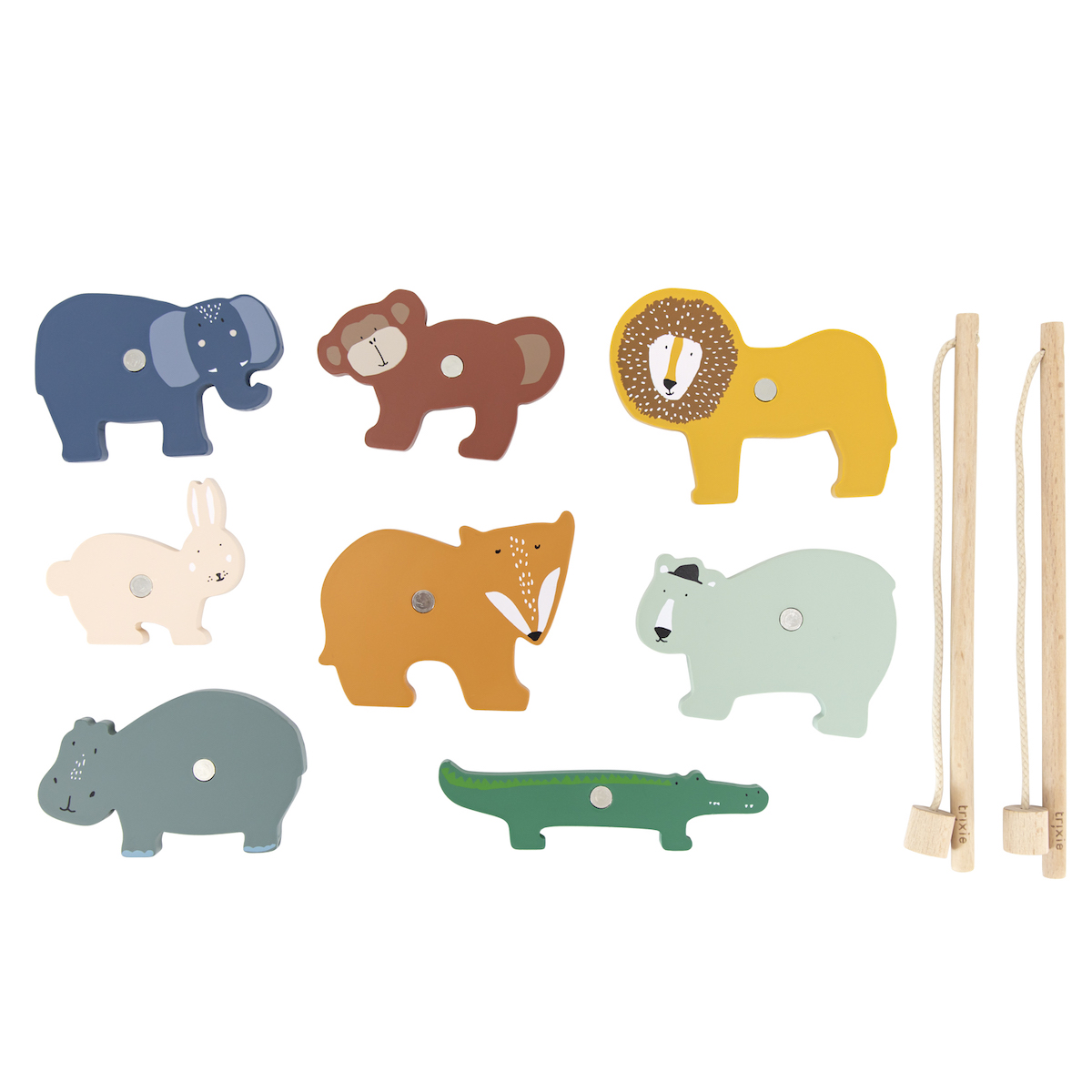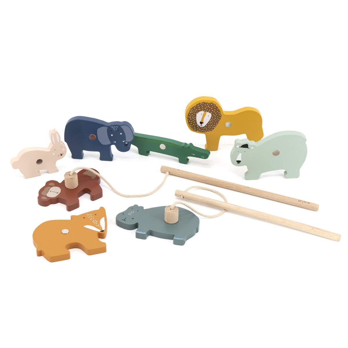 Jeu de pêche en bois de Trixie. Deux cannes à pêche en bois, huit amis animaliers, des heures de plaisir ! Attrapez votre ami animalier préféré à l'aide de la canne à pêche magnétique. Pouvez-vous imiter le son de l'animal que vous venez d'attraper ? Ce jeu perfectionne la motricité et la coordination des enfants. Qui parvient à pêcher le plus d'animaux ? Le jeu de pêche est fabriqué en bois 100 % certifié FSC©. Toutes les peintures sur ce produit sont à base d'eau, non toxiques et sans danger pour les enfants.