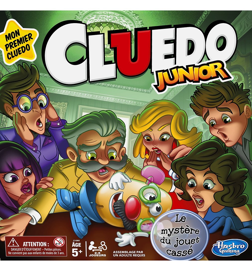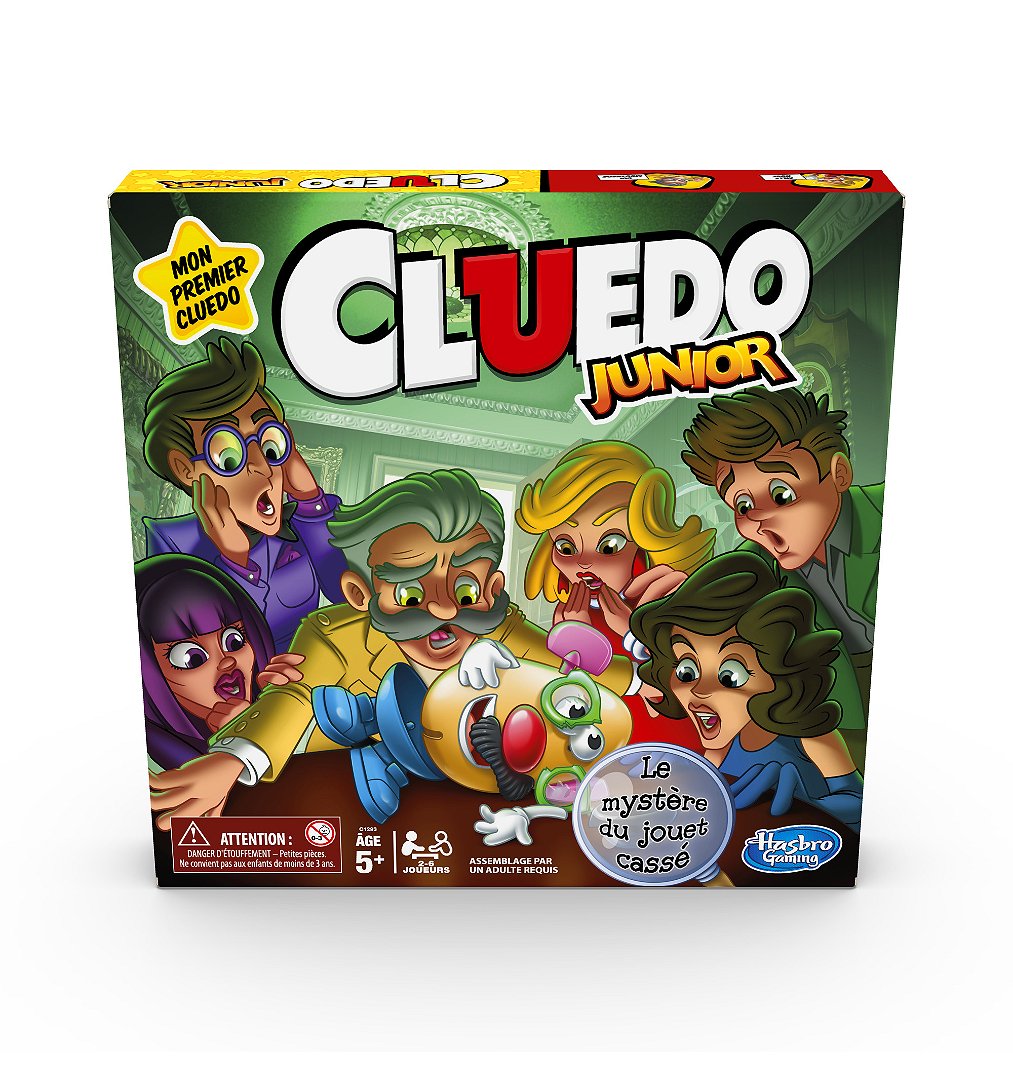 | Plus produit | CLUEDO POUR JEUNES ENFANTS : Idéal pour initier les enfants (à partir de 5 ans) au jeu de plateau emblématique des grands détectives. Le jeu pour enfants Cluedo Junior se joue comme le jeu Cluedo classique, mais avec un thème mystérieux qui inclut un jouet cassé OH NON ! UN JOUET PRÉFÉRÉ EST CASSÉ : Oh non ! Quelqu\'un a cassé un jouet ! Dans le jeu Cluedo Junior, les joueurs doivent user de stratégie et procéder par élimination pour résoudre le mystère QUI, QUOI ET OÙ : Les joueurs doivent tenter de résoudre le mystère du jouet cassé. Ils doivent découvrir quel était le jouet, qui l\'a cassé et à quelle heure JEU D\'INTÉRIEUR AMUSANT POUR LES ENFANTS : Cluedo Junior est un jeu de société amusant pour les après-midi entre amis ou les jours de pluie. À partir de 5 ans SUPER CADEAU POUR ENFANTS : Les jeux Hasbro classiques sont d\'excellents cadeaux pour la famille et les enfants |