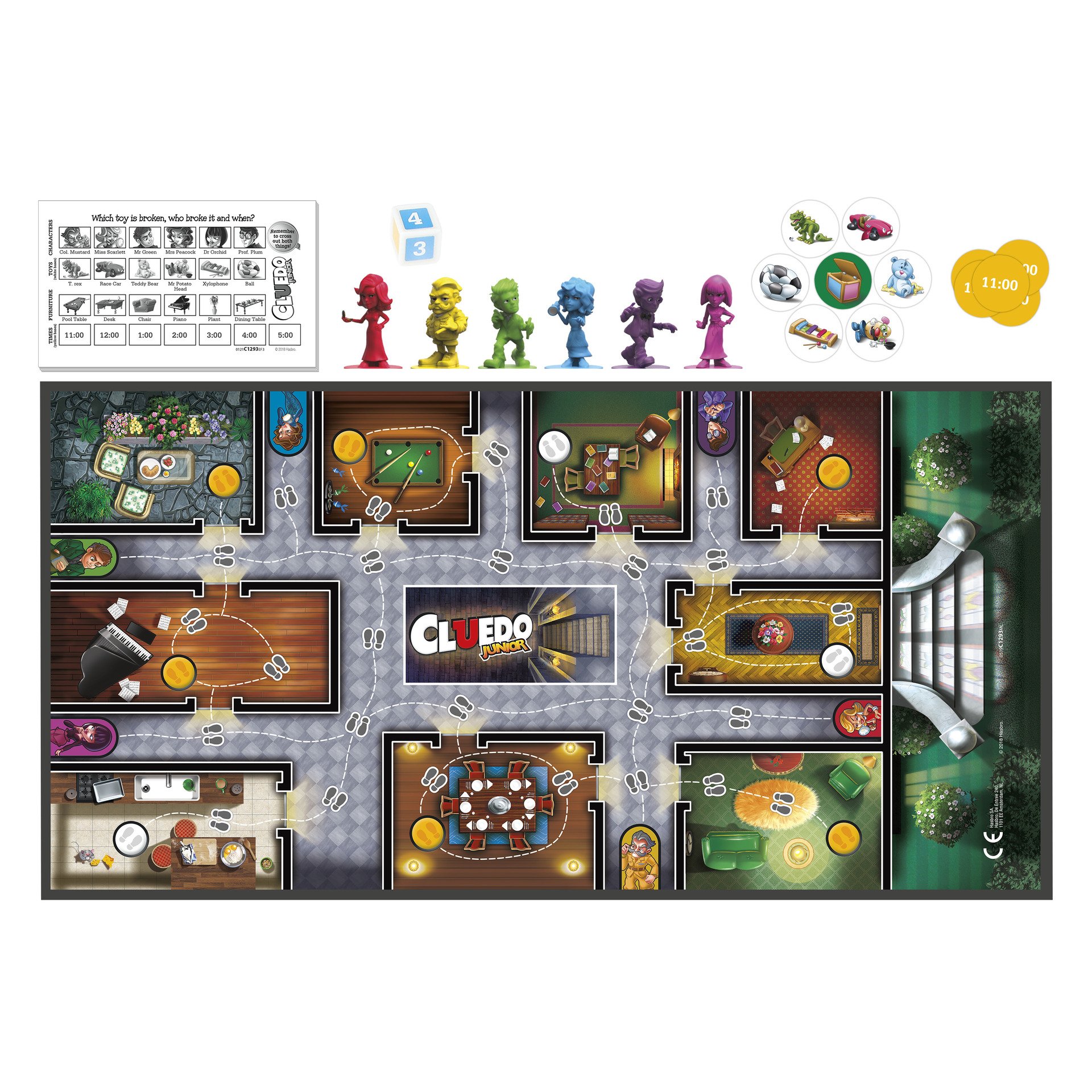 Jeu de plateau Cluedo Junior, pour enfants, à partir de 5 ans, Le mystère du jouet cassé, jeu d'enquête classique pour 2 à 6 joueurs