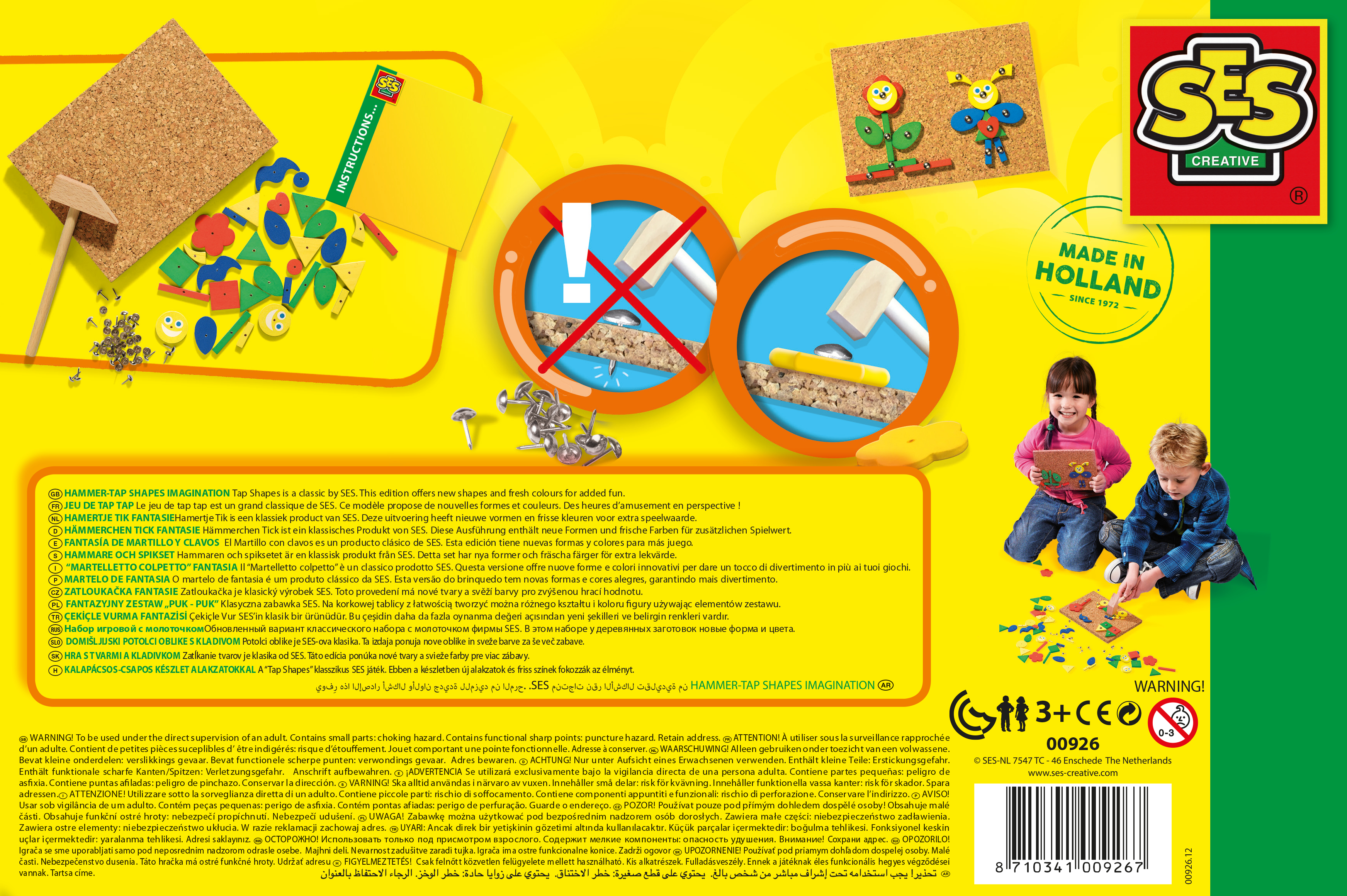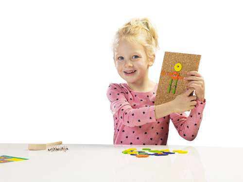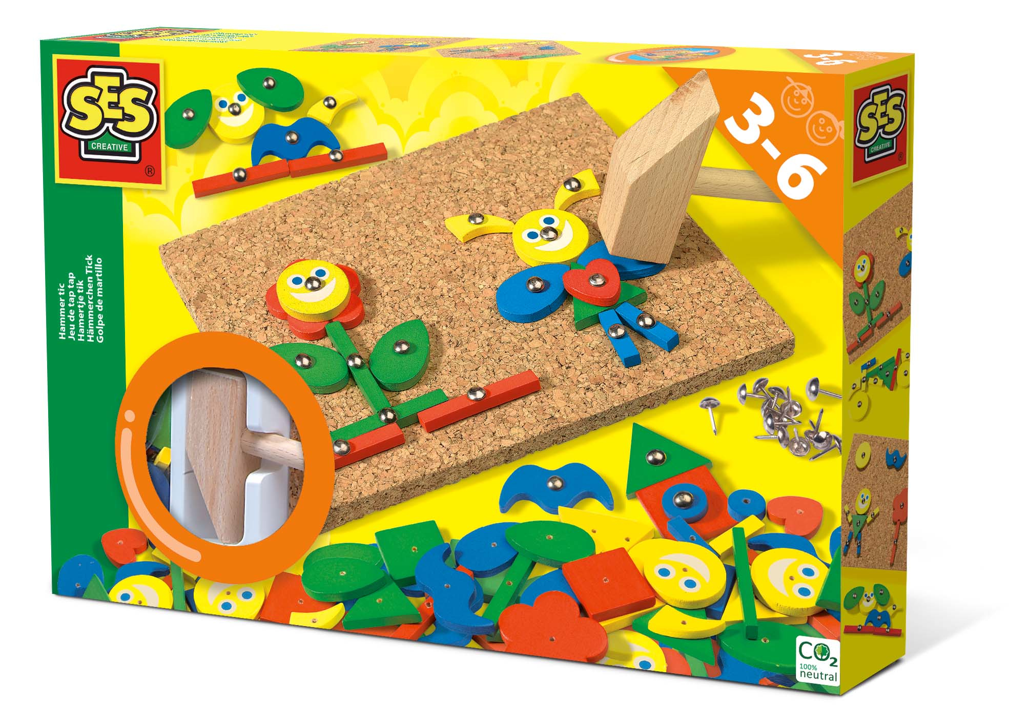 Laisse libre court à ton imagination et réalise divers formes, objets, personnages … en fixant sur le support de liège les diverses pièces de couleurs en bois (pièces pré-percées) - Comprend : 32 pièces de bois de diverses tailles, formes et couleurs, un carré de liège épais, un maillet en bois et des clous à grosses têtes rondes. SES est le spécialiste des jouets créatifs depuis plus de 40 ans. Le développement de l'enfant est le concept central du développement de nos produits. Il est important que l'enfant ait la possibilité de développer ses talents et d'utiliser sa créativité en toute sécurité. Les produits que nous développons sont essentiels pour les différents stades de développement de tout enfant, apportant créativité, qualité et sécurité.