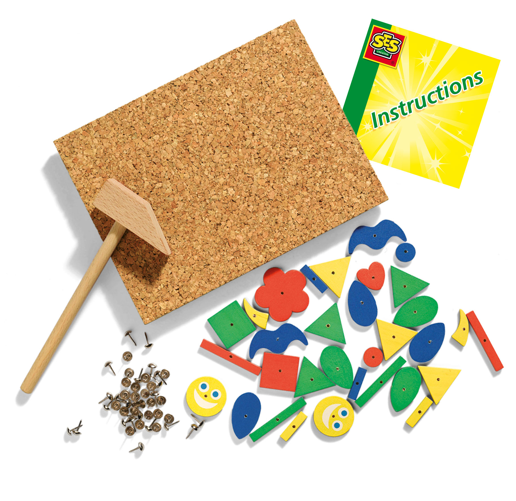 La boîte contient 1 x Cork Board 1 x Hammer Assorted pieces Assorted pegs