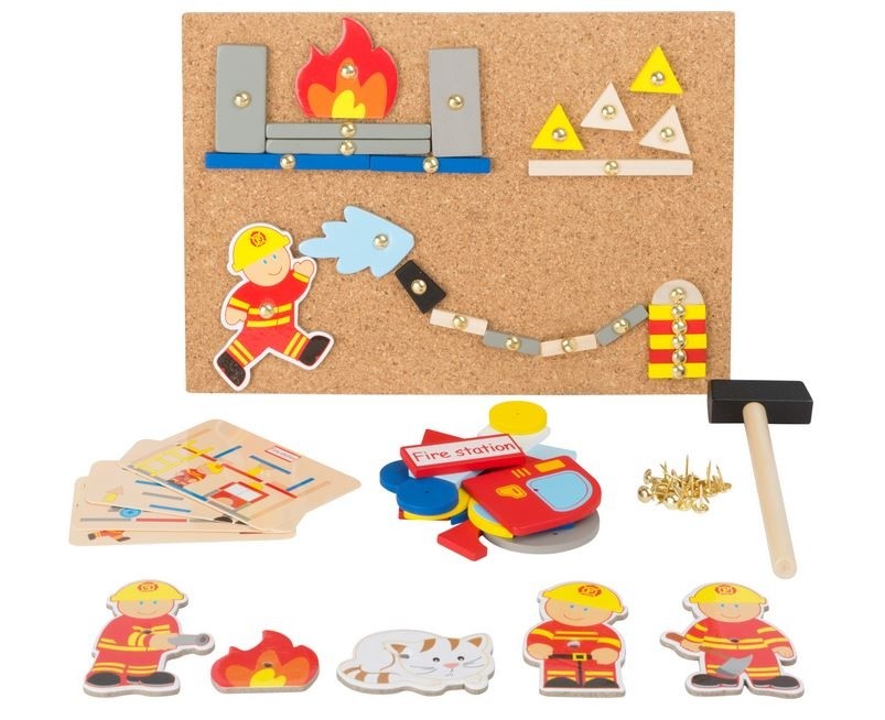 Avec ce jeu de clous, chaque enfant peut construire sa caserne de pompiers individuelle.