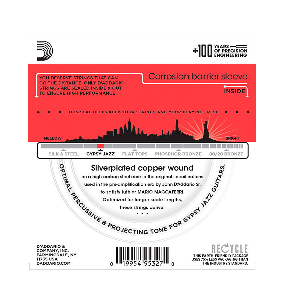 Les jeux Gypsy Jazz ont été créés pour répondre à la demande croissante des guitaristes de jazz manouche en manque de ” Django style ” ! Le filé de la corde est en acier carbone et recouvert en plaqué argent. C'est ce qui délivre ce son chaud et optimal pour les guitares spéciales ” Gypsy Jazz ”.