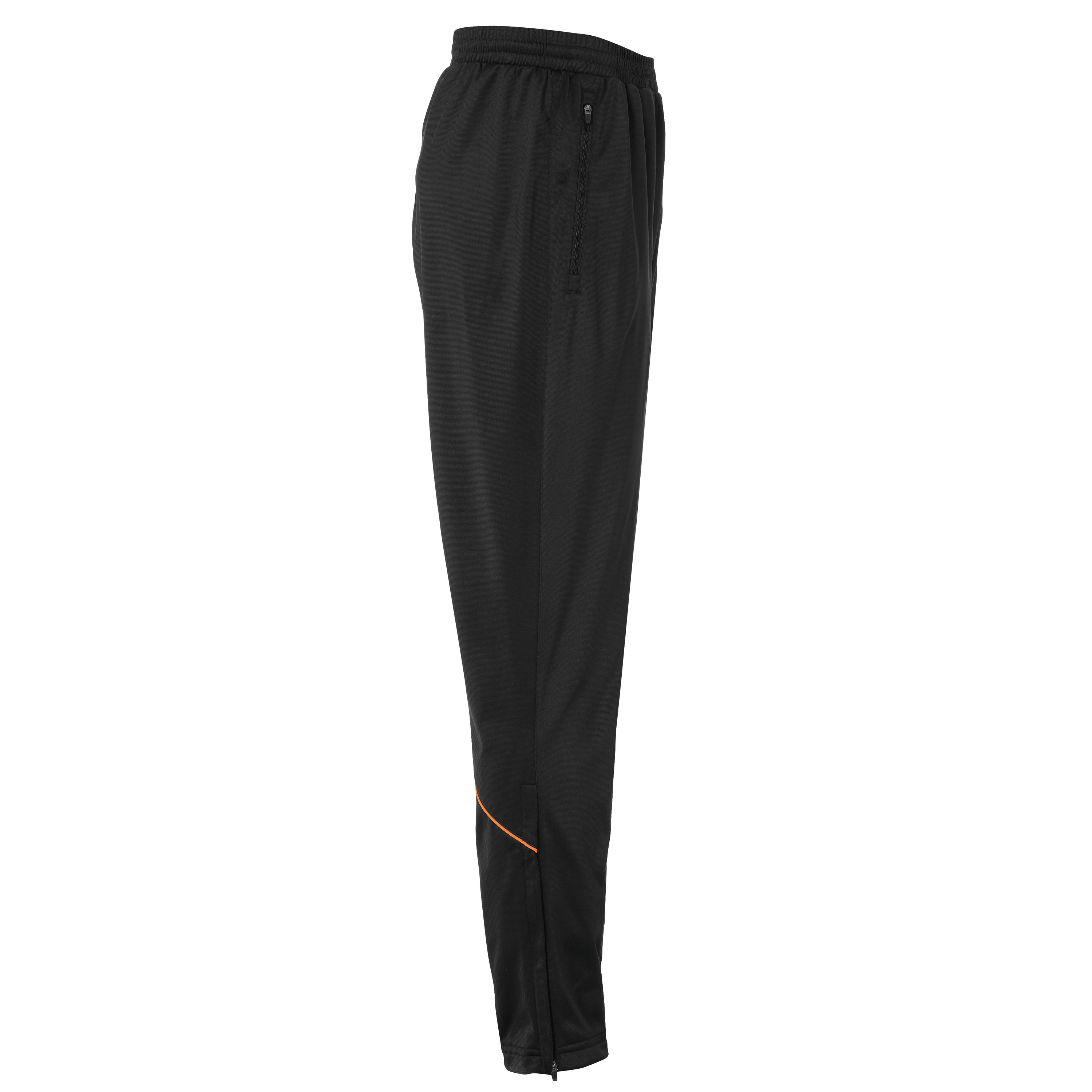 Pantalon en polyester. Ceinture ajustable avec cordon de serrage. Deux poches latérales avec fermeture éclair. Broderie uhlsport. Liseré sur les mollets Fermeture éclair aux jambes.