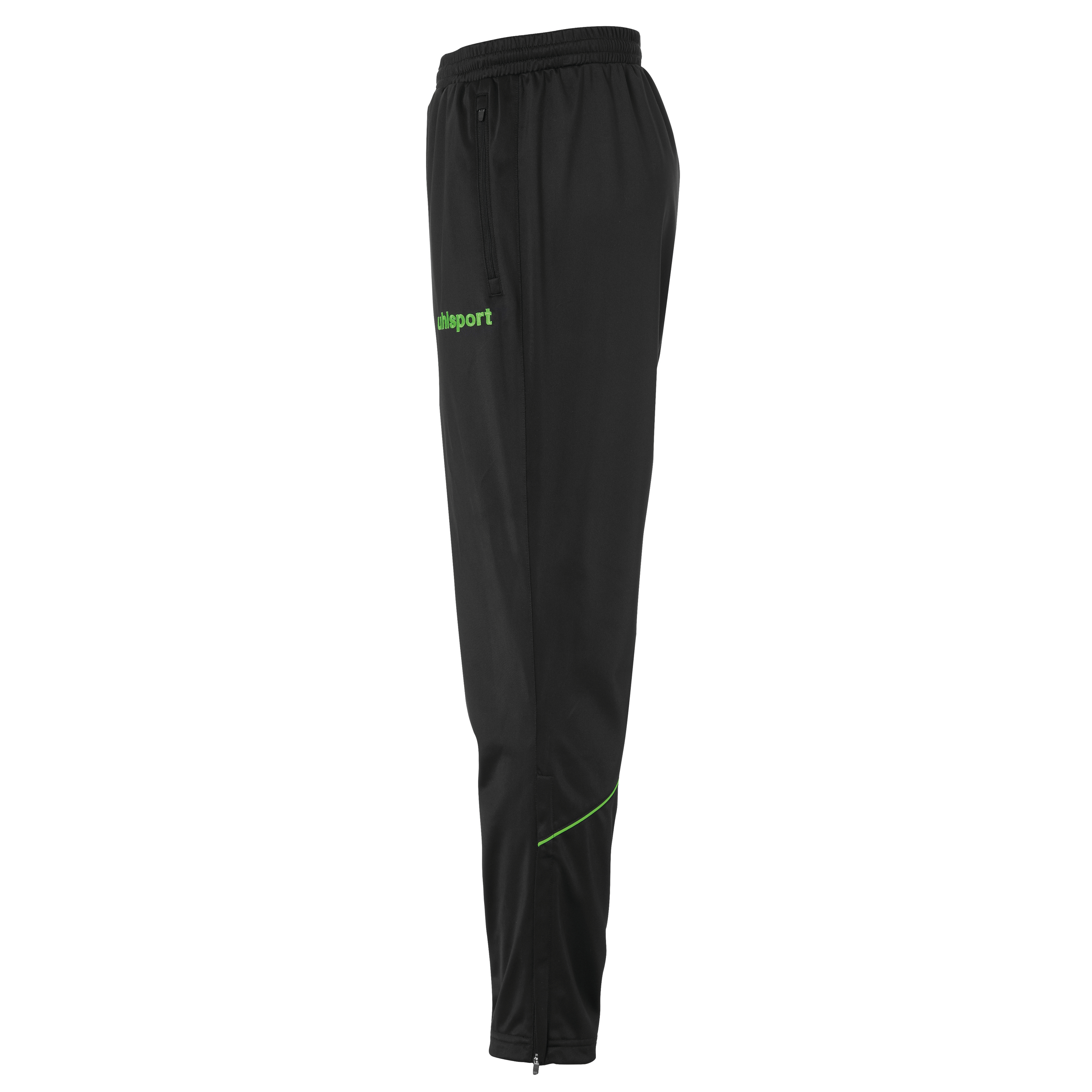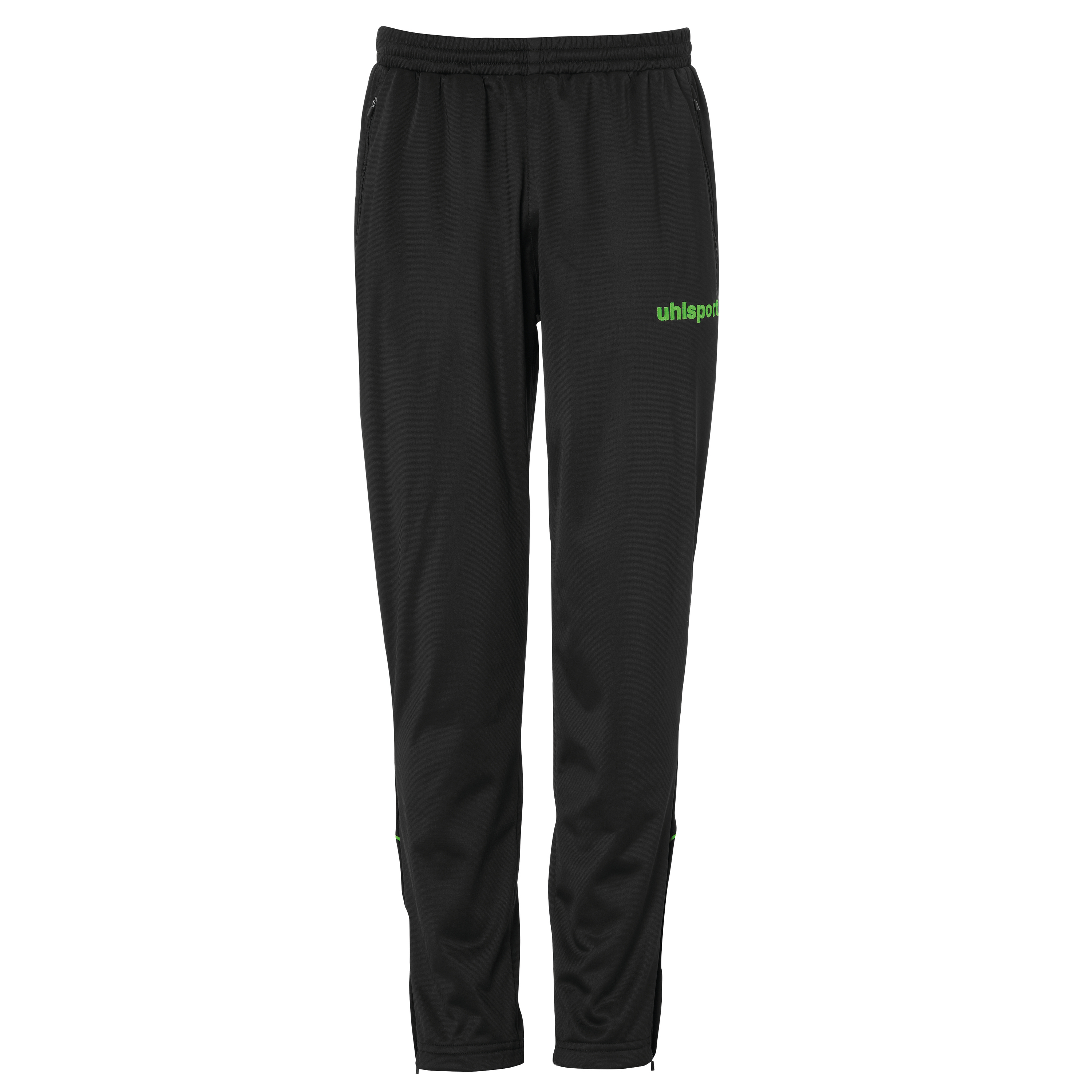 Pantalon en polyester. Ceinture ajustable avec cordon de serrage. Deux poches latérales avec fermeture éclair. Broderie uhlsport. Liseré sur les mollets Fermeture éclair aux jambes.