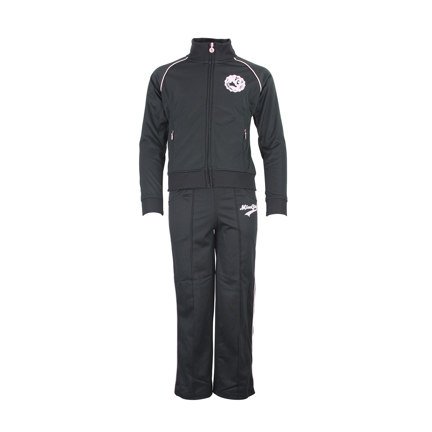 Caractéristiques techniques : Ensemble : veste + pantalon Uni Logo devant pantalon et veste Composition : 100% polyester Ce modèle existe en coloris rose, noir et gris.