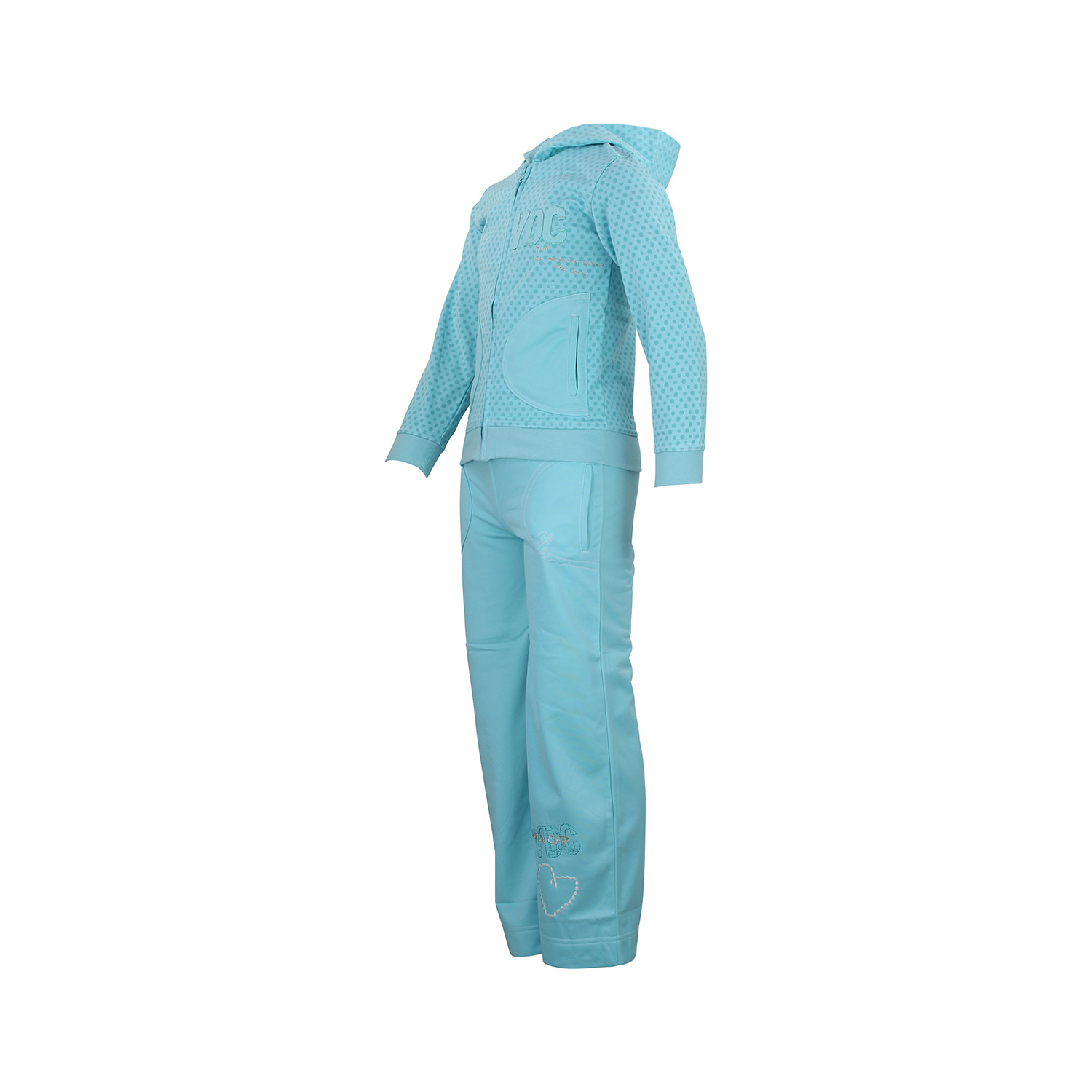 Caractéristiques techniques : Ensemble : veste + pantalon Uni Veste avec motif Logo devant pantalon et veste Composition : 100% polyester Ce modèle existe en coloris marine, rouge, blanc, turquoise, rose et gris.