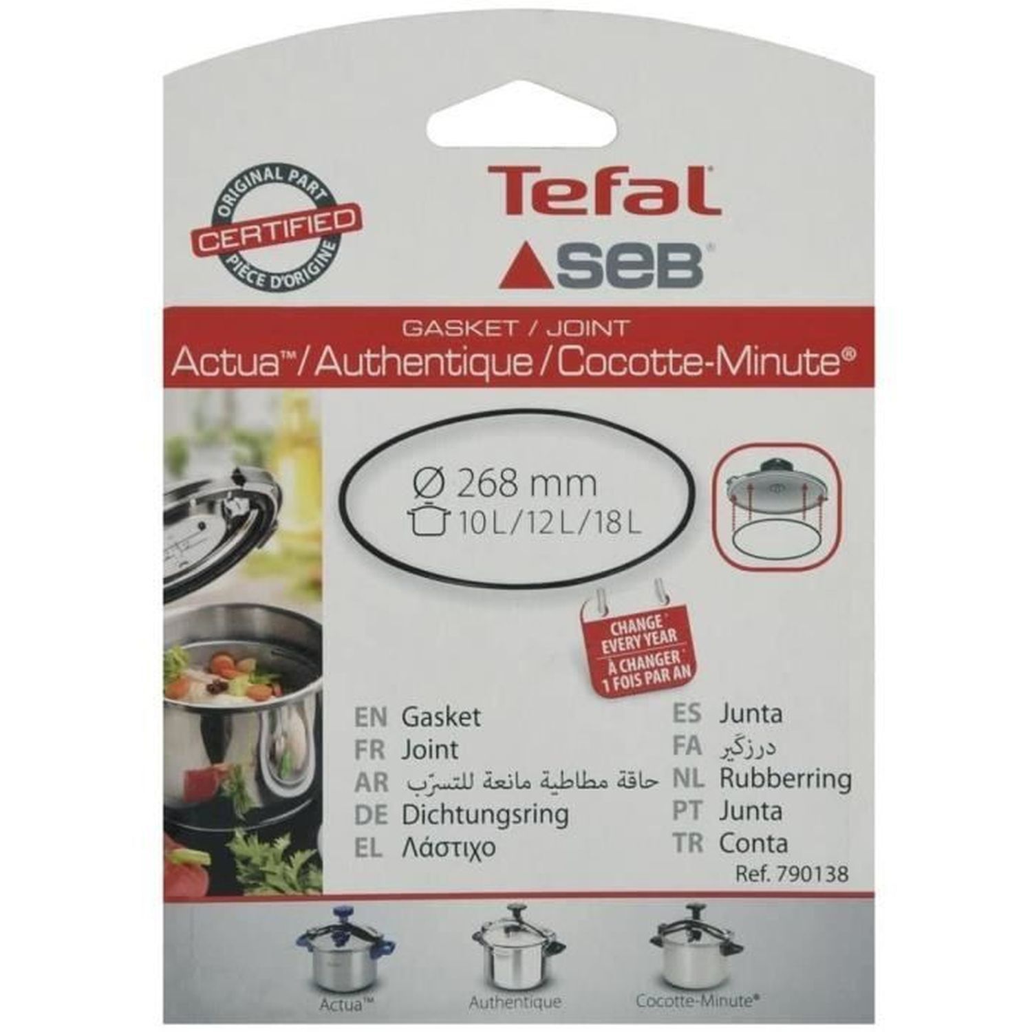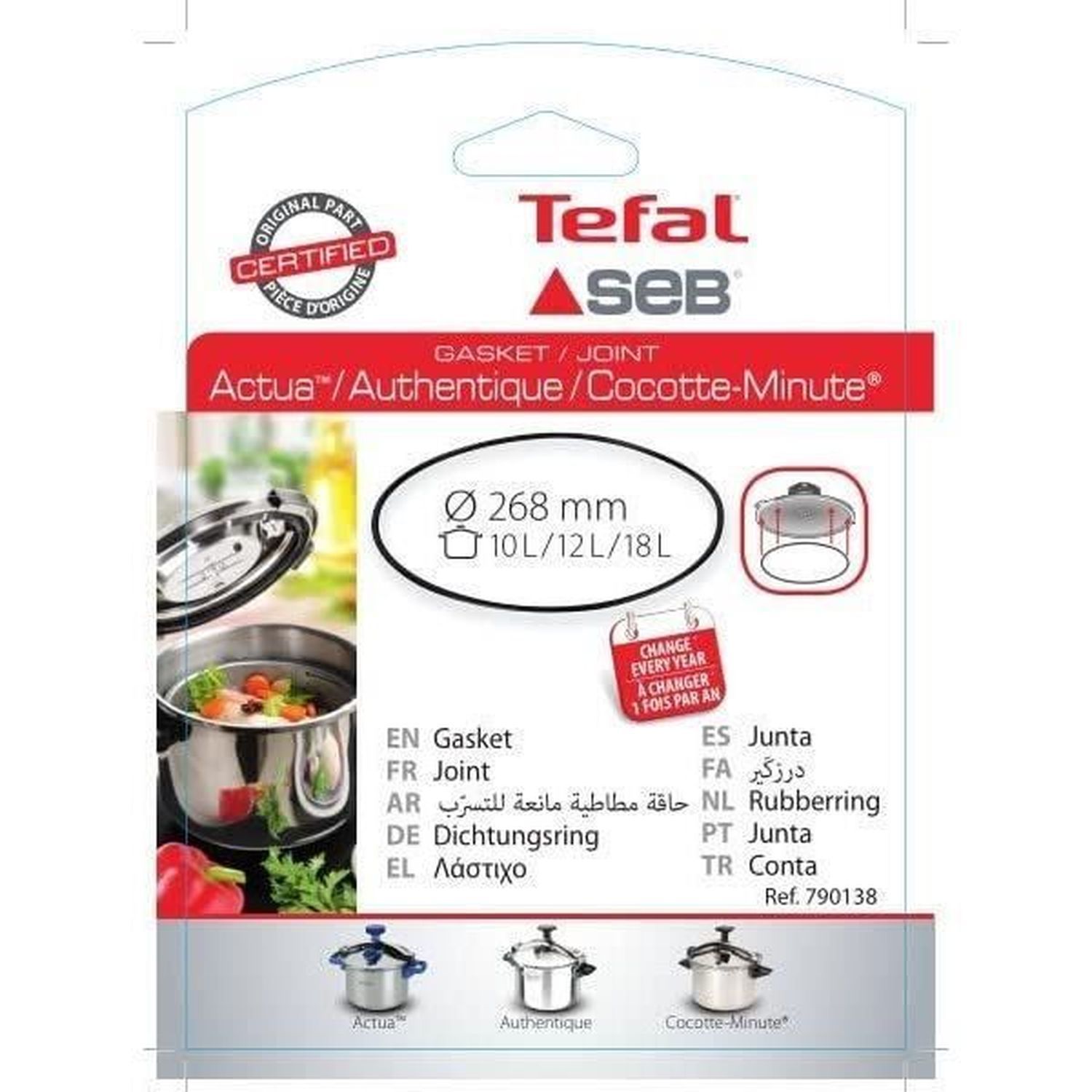 Joint silicone 10 à 18L Alu/Couleur/Inox Compatible avec autocuiseurs ACTUA / ACTUA MODULO / AUTHENTIQUE / COCOTTE MINUTE