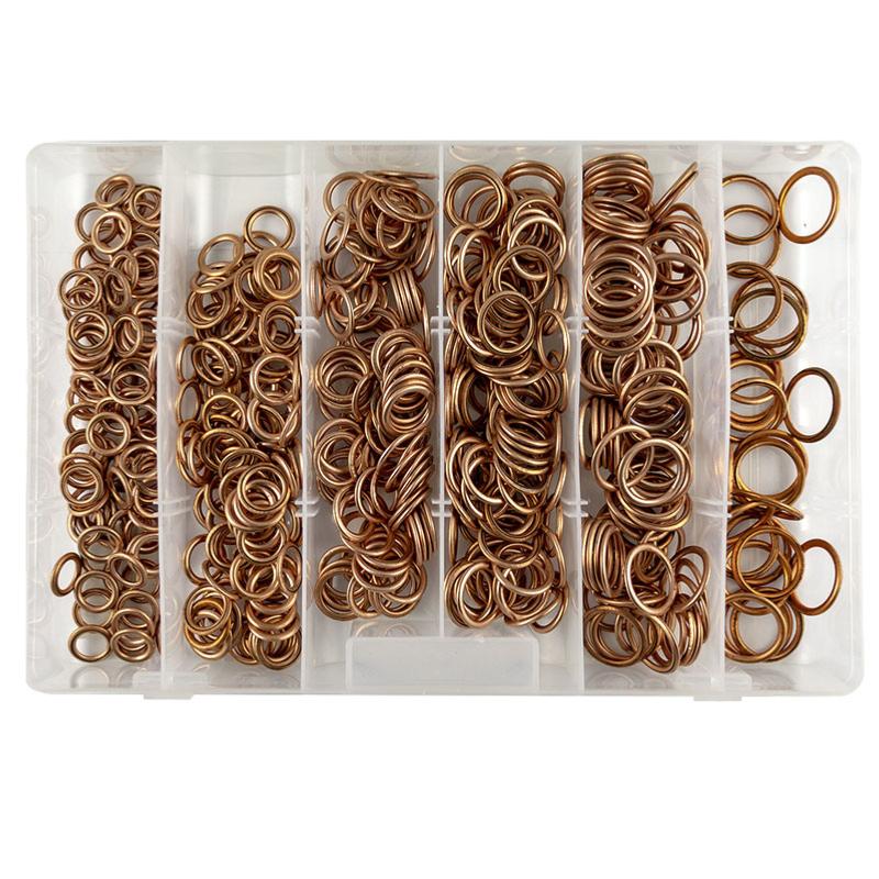 Assortiment de joints de bouchon de vidange en cuivre.