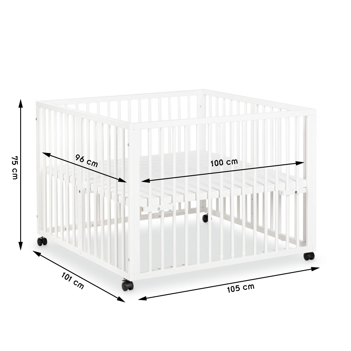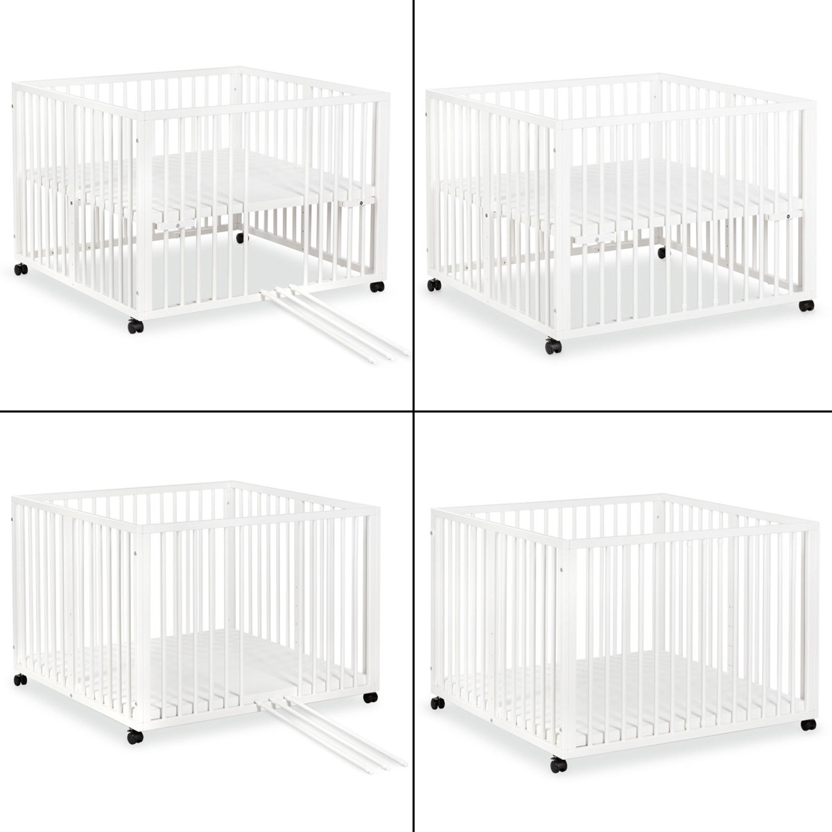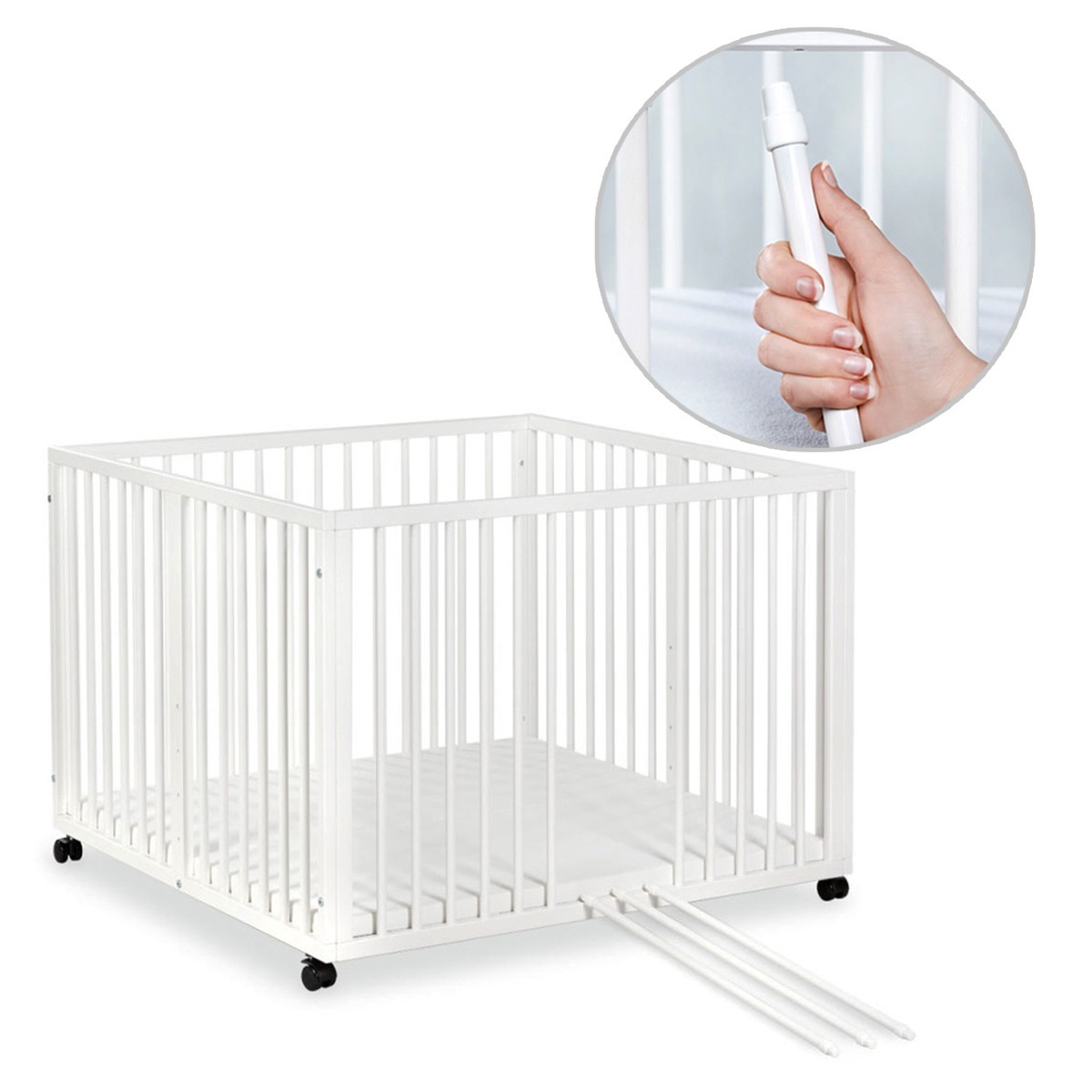 | Libellé | JONAS Parc bébé réglable en bois avec roulettes intégrées Blanc |