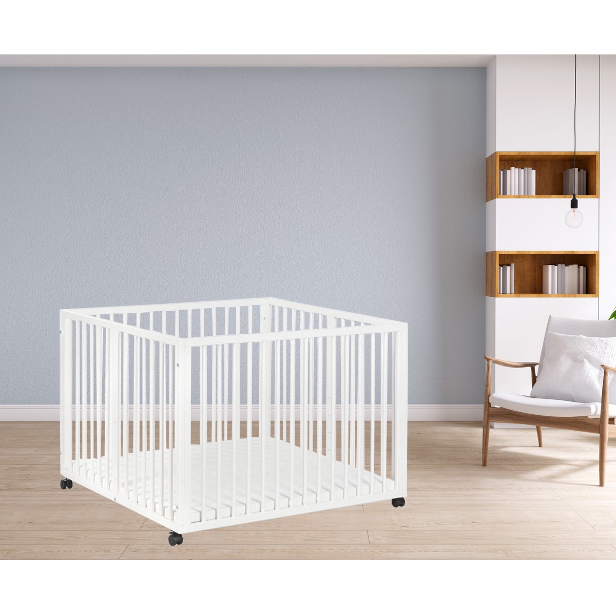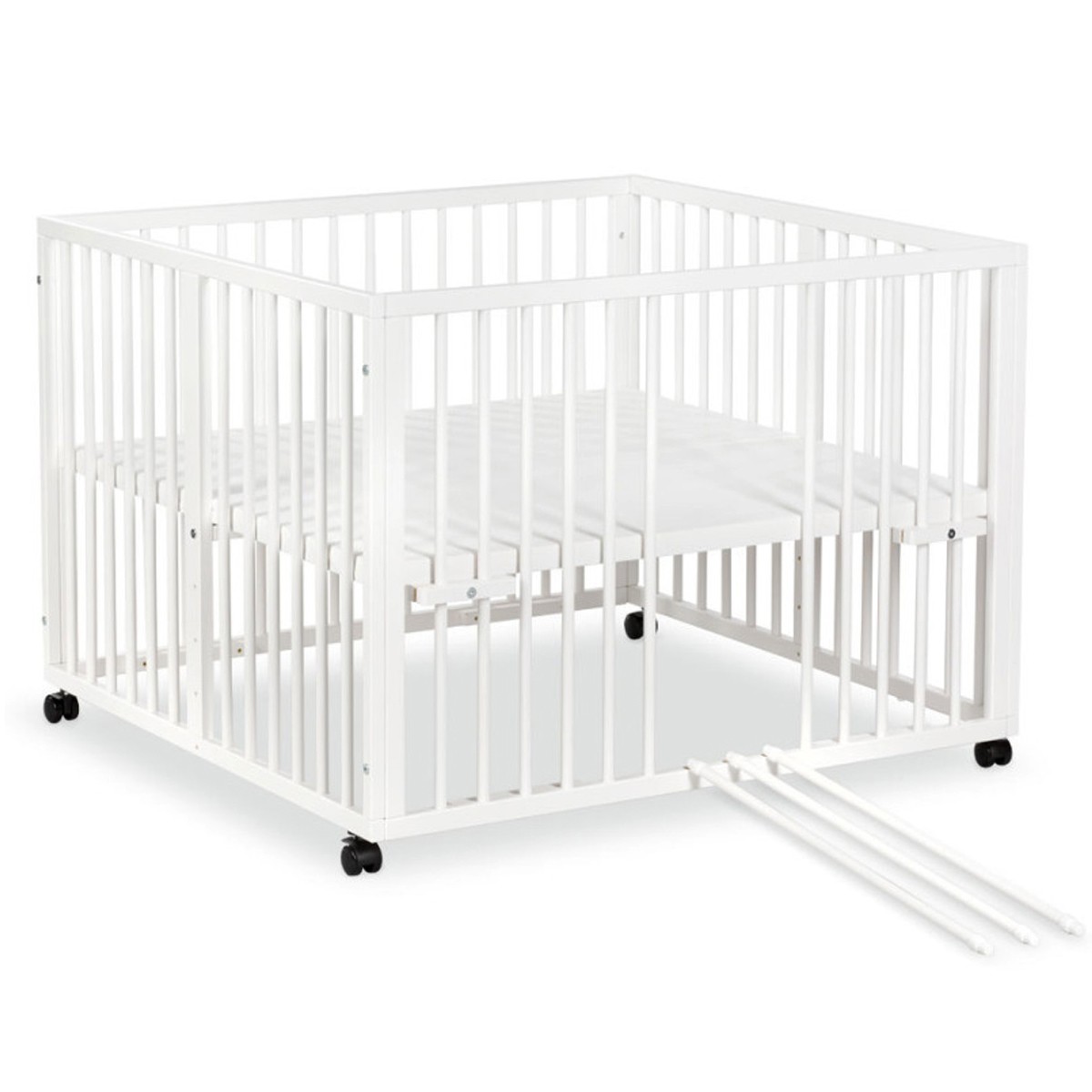 Parc bébé réglable en bois avec 4 roulettes