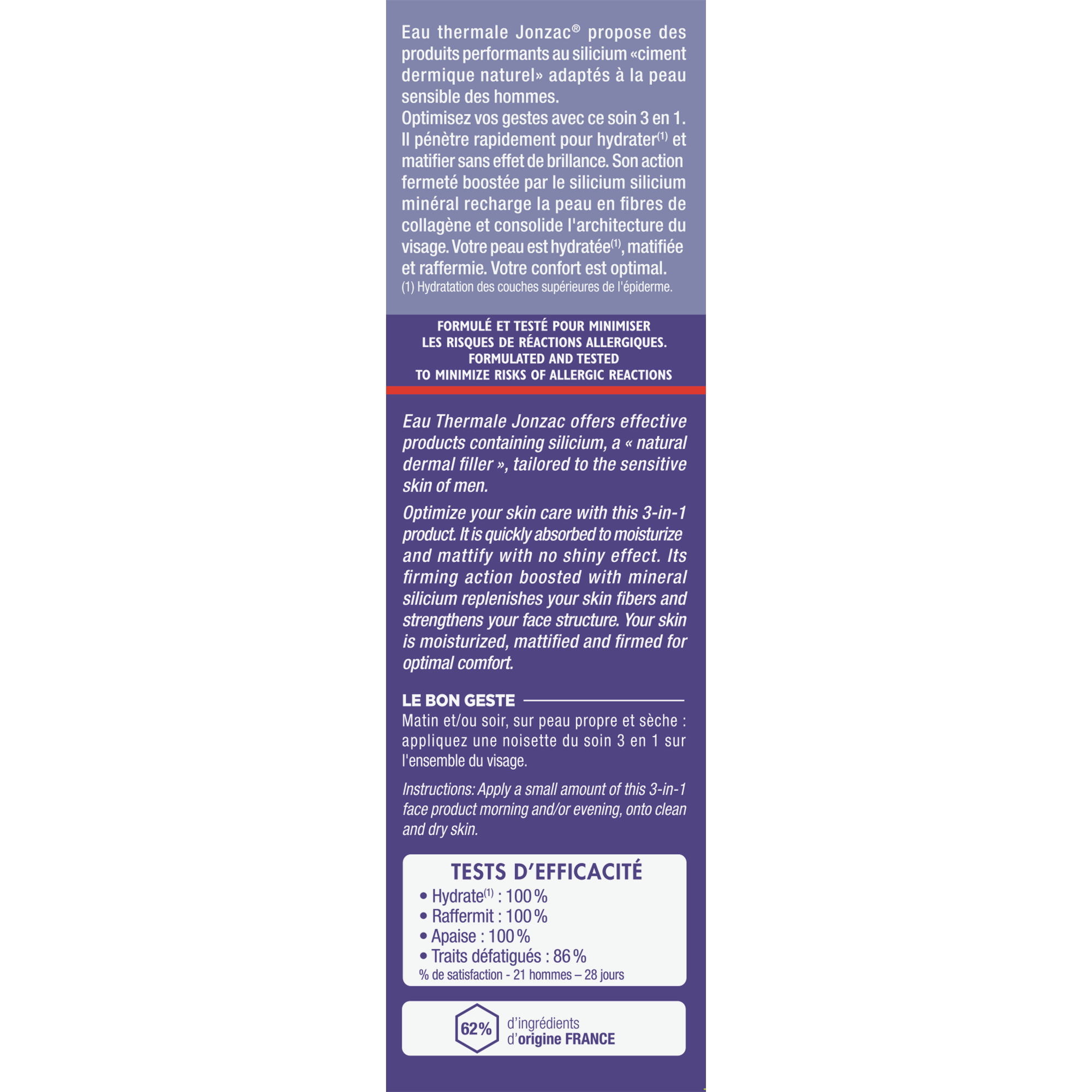 | Libellé | Jonzac Men soin fermeté fluide hydratant bio 50ml |