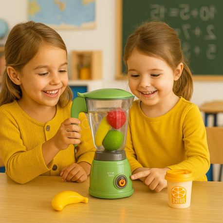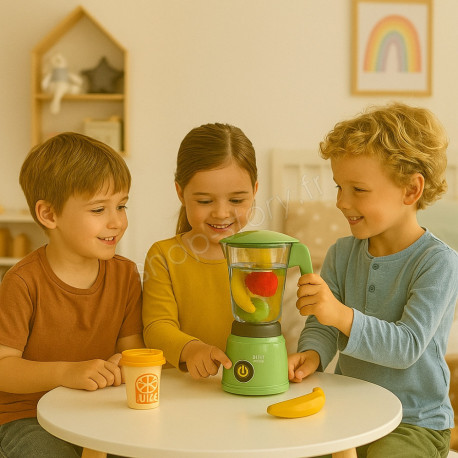 En manipulant les fruits, en les insérant dans le blender et en appuyant sur les commandes, les enfants exercent leur motricité fine de manière progressive et intuitive. Chaque geste contribue à renforcer la coordination œil-main, la précision, la force de préhension et la confiance en soi.