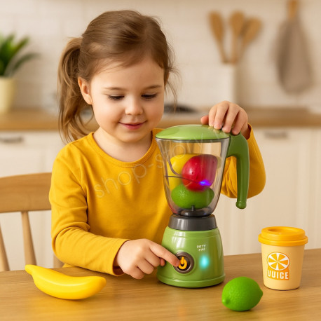 Le blender jouet recrée à la perfection les sensations d'un véritable appareil électroménager. Grâce à son bouton central rétroéclairé, ses effets lumineux doux et dynamiques et son bruitage intégré imitant le mixage, l'enfant est plongé dans une expérience de jeu immersive.
