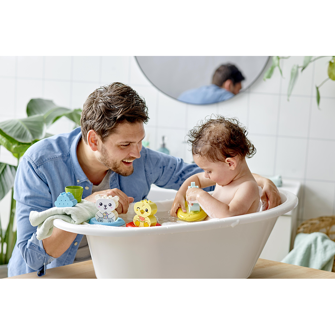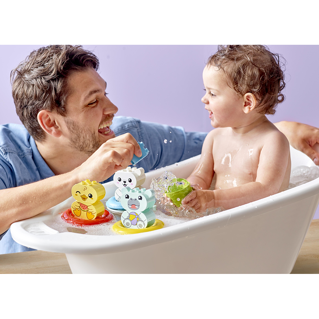 Le train flottant lego est un jouet de bain super ludique ! Les animaux colorés et empilables attirent l’attention de mon fils, et le format flottant rend le bain plus amusant. Les pièces sont faciles à manipuler, même si elles peuvent être un peu glissantes dans l’eau.