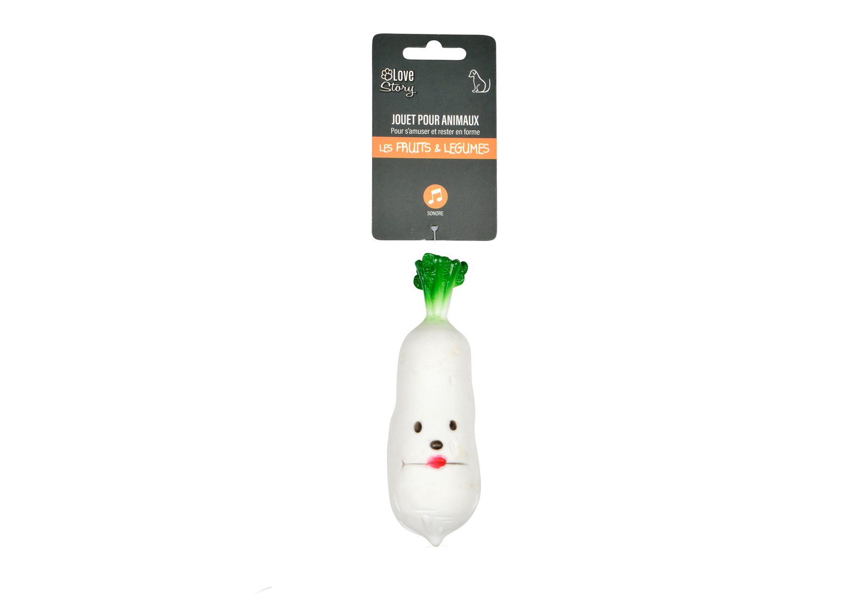 Jouet en forme de legume radis pour chien Jouet sonore Matière : vinyle Dimension : 13.5 cm