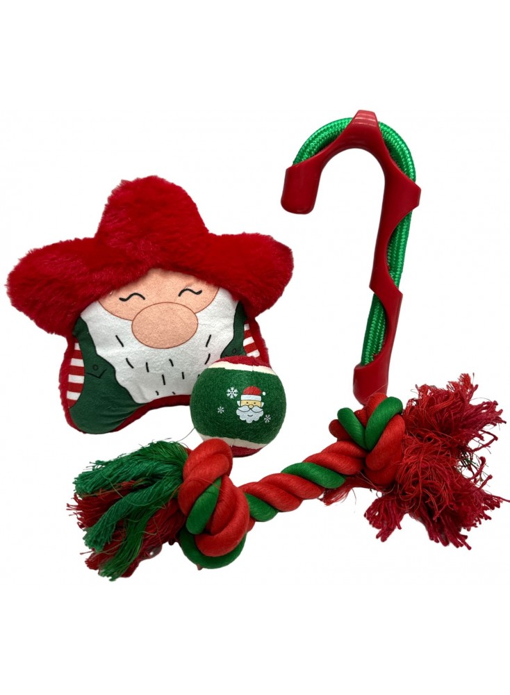 Offrez à votre fidèle compagnon un Noël inoubliable avec notre coffret cadeau de jouets en peluche pour chien ! Ce lot festif comprend 3 jouets adorables et divertissants : une peluche douce en forme d'étoile Père Noël pour des câlins réconfortants, une canne à sucre à mâcher pour satisfaire son instinct de joueur, et une corde aux couleurs de Noël pour des heures d'amusement et de dépense énergétique. Un cadeau original et amusant à glisser sous le sapin pour célébrer les fêtes avec votre chien !