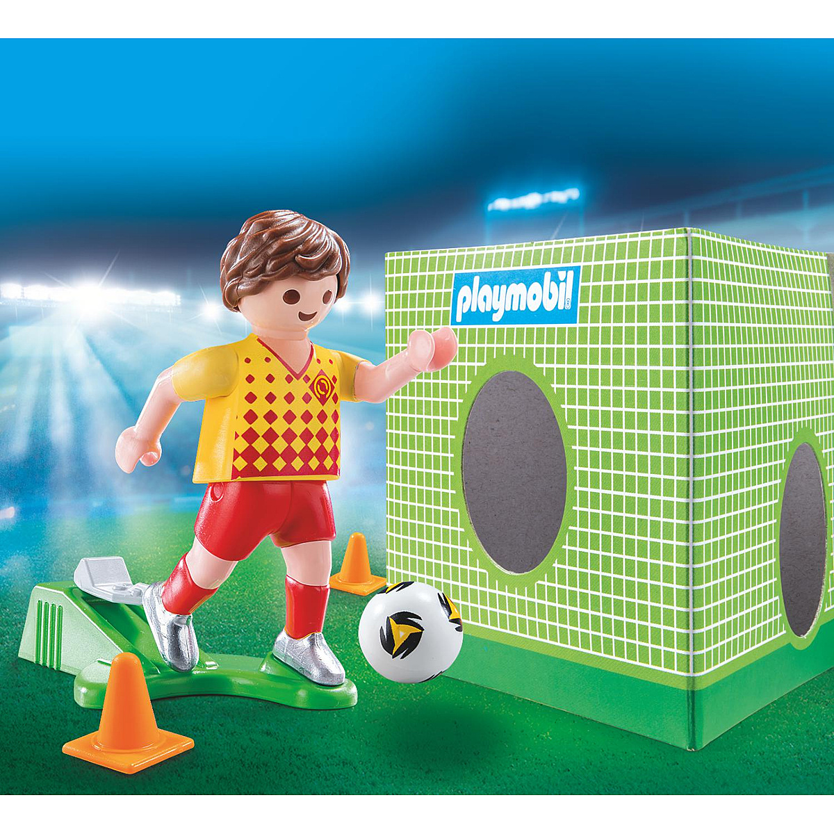 Grâce à ce but, le joueur vient juste de faire gagner son équipe. Contient un personnage avec une jambe mobile pour tirer des buts et son but en carton.