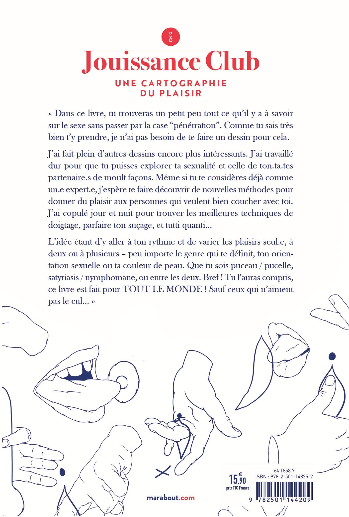 [Cet avis a été recueilli en réponse à une offre.] Jouissance Club est au delà d'un simple kamasutra. Avant de s'attaquer à la jouissance, June Pla prend le temps de décrire le fonctionnement de nos organes génitaux et de leurs compositions. C'est un livre que tout le monde devrait lire pour mieux se connaître et appréhender ce qui nous sert de "maison". C'est bienveillant, ouvert d'esprit et intéressant !
