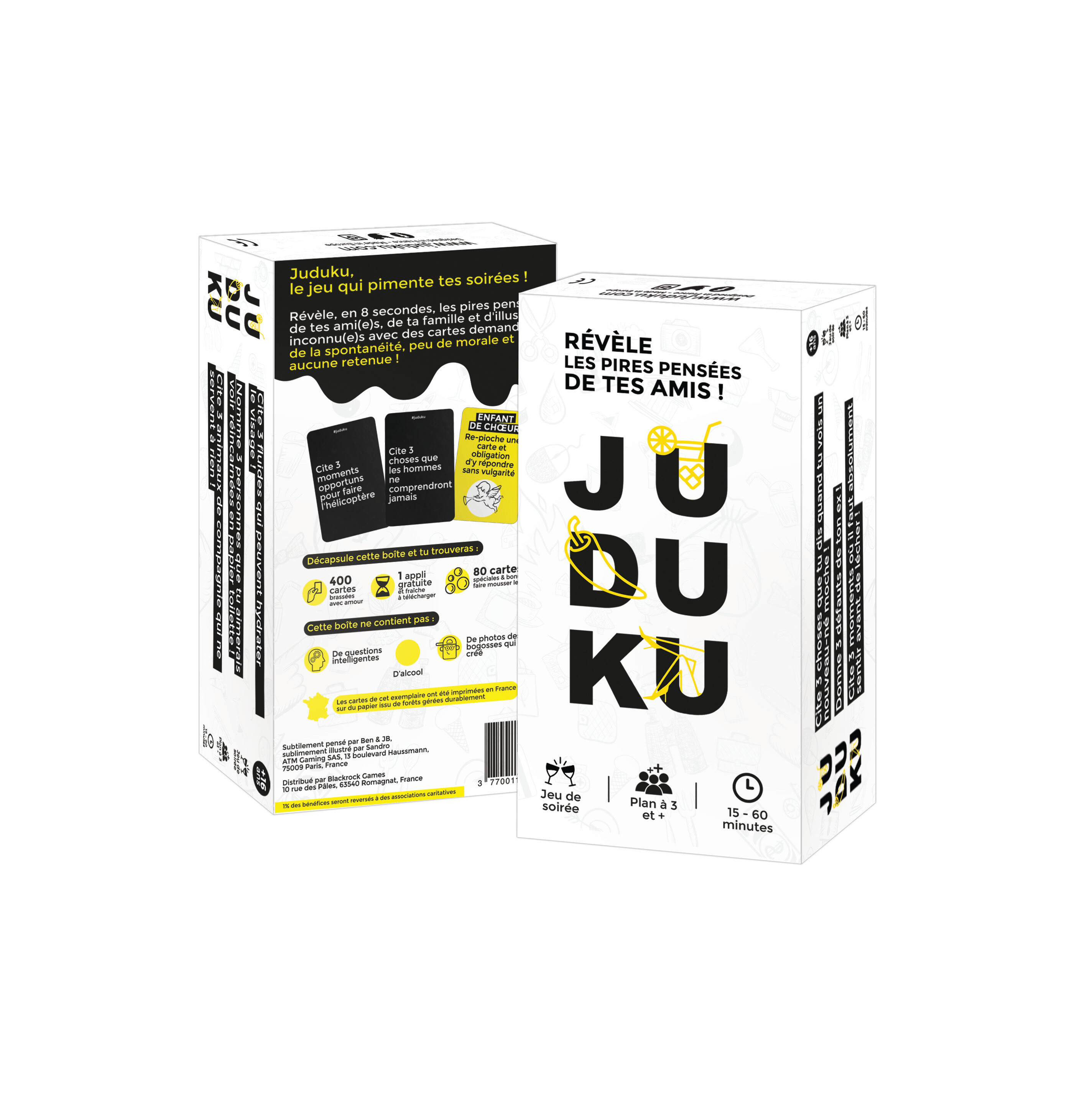 Juduku a été crée en 2018 par Ben & JB, deux potes dans leur bar fétiche. Ils étaient partis pour monter un bar mais au vu de leur faible résistance à la boisson, ils ont préféré créer le jeu de soirée Juduku.