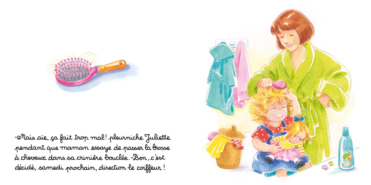 Les cheveux de Juliette sont trop longs. Maman l'emmène chez le coiffeur pour la première fois.