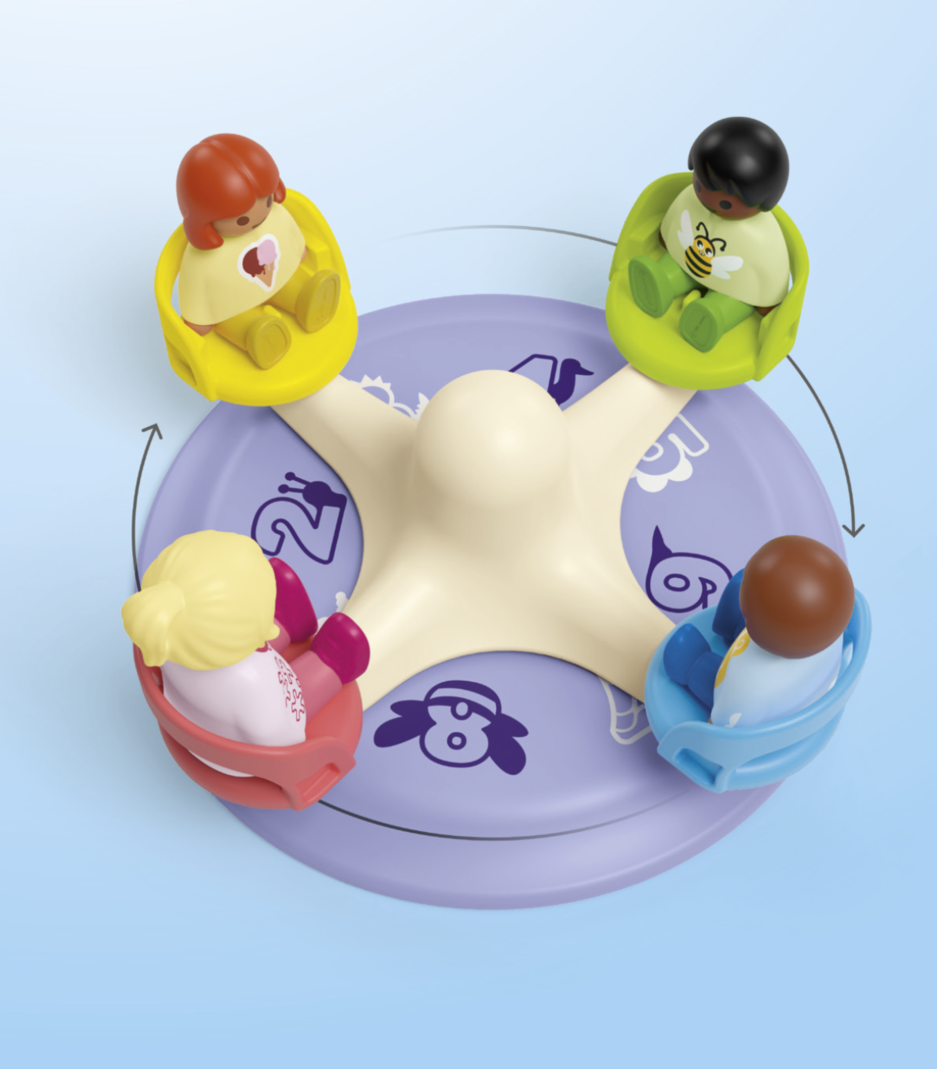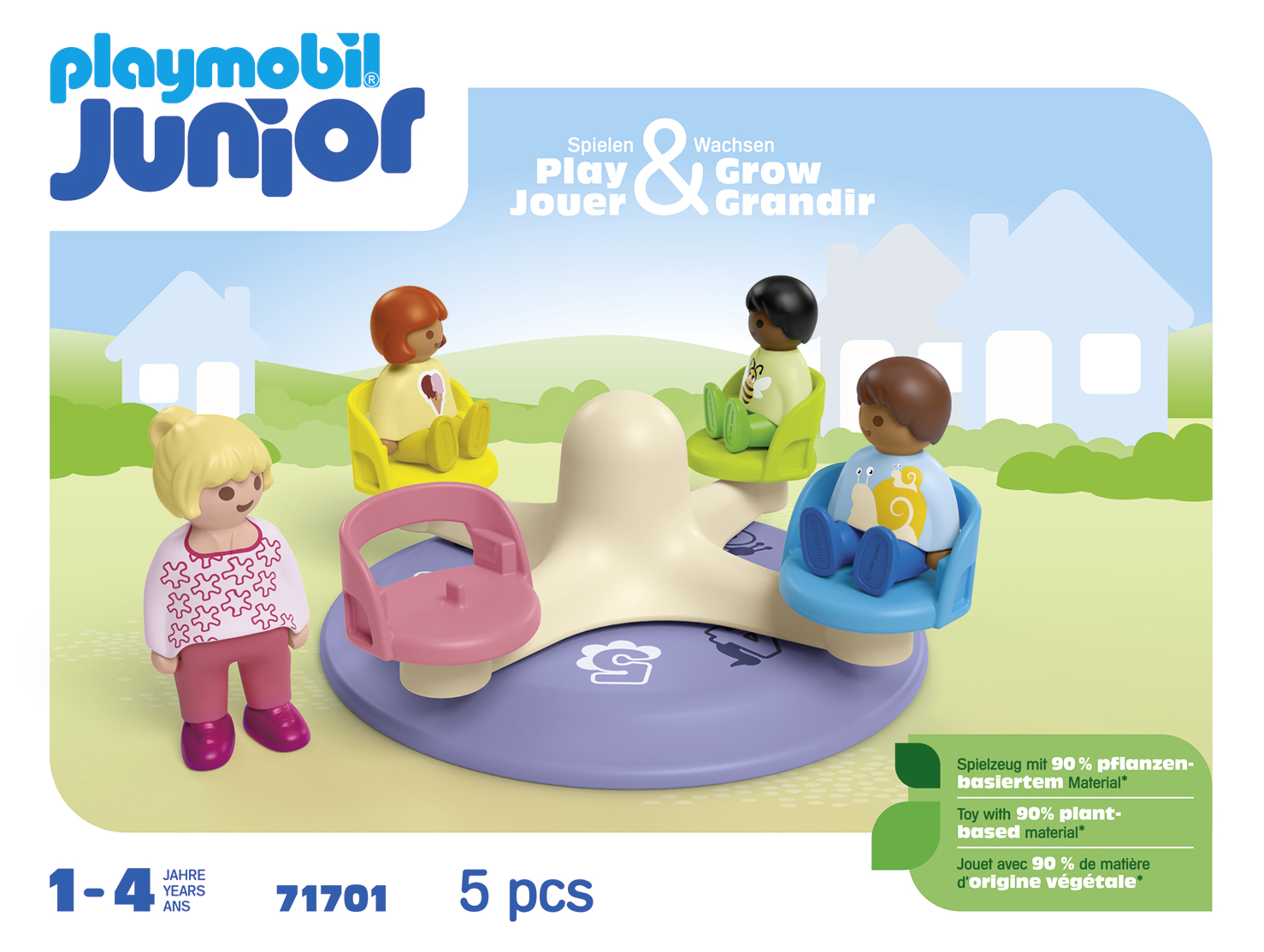 La gamme Junior de Playmobil aide les enfants à développer leur créativité dès le plus jeune âge. Sur le tourniquet, les personnages s'élancent en encourageant la motricité des enfants.
