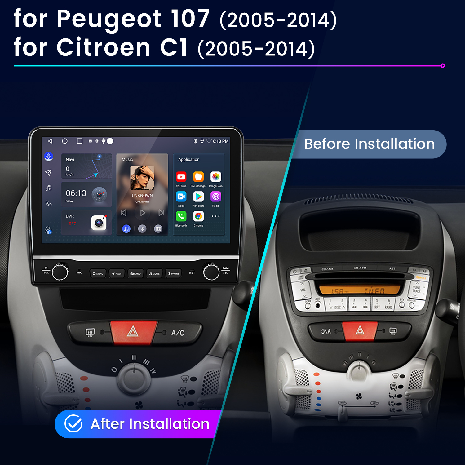 Cet autoradio Android avec écran tactile est spécialement conçu pour le. Grâce à la façade d'adaptation incluse, il s'intègre parfaitement au tableau de bord d'origine de votre véhicule, offrant un aspect moderne d'usine avec la nouvelle interface intuitive UI 4.0.