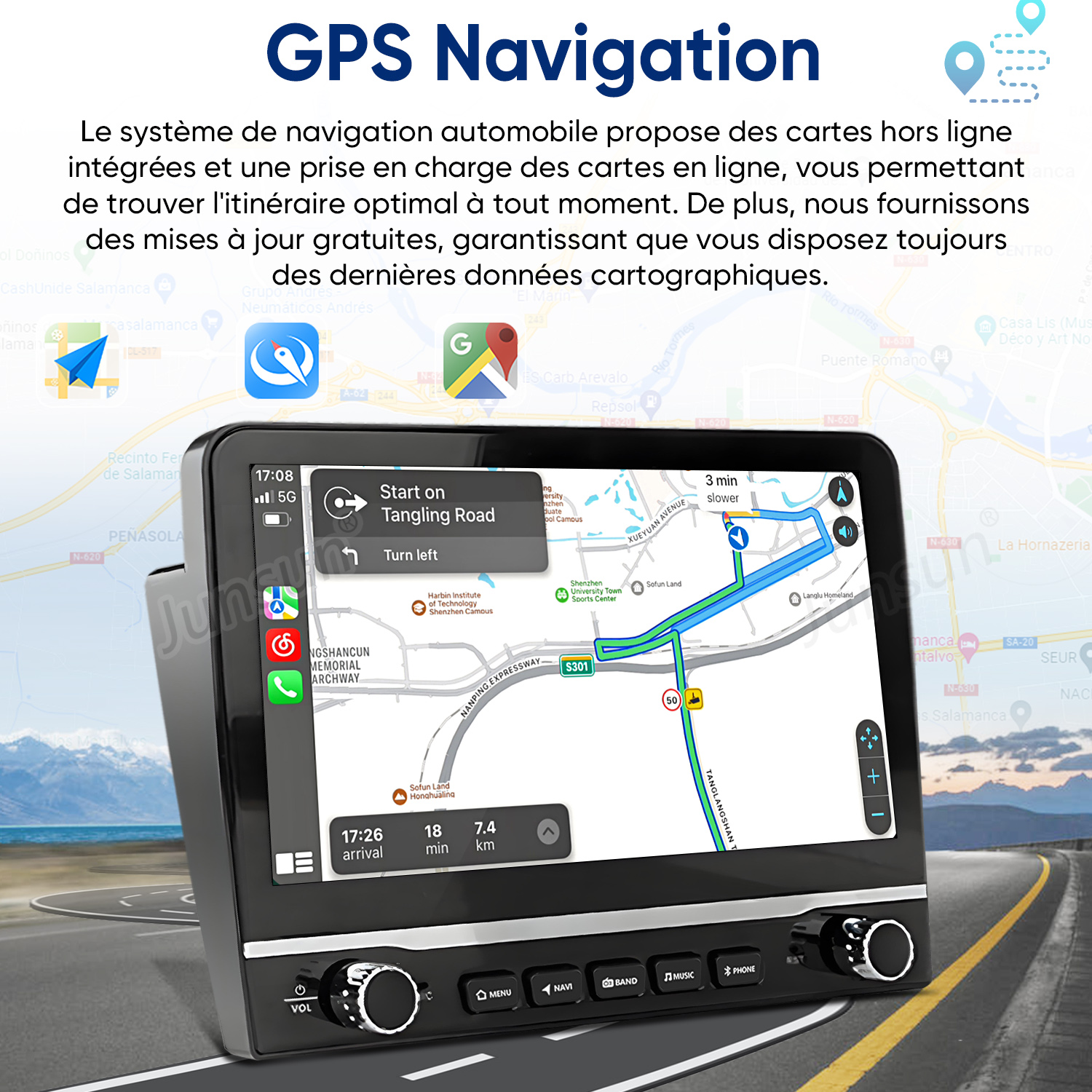 Conduite Sûre et Pratique : Compatibilité totale avec les commandes au volant de votre véhicule. Module GPS inclus pour la navigation hors ligne et en ligne. Fonction d'écran partagé (Split-Screen) et radio FM/RDS intégrés.