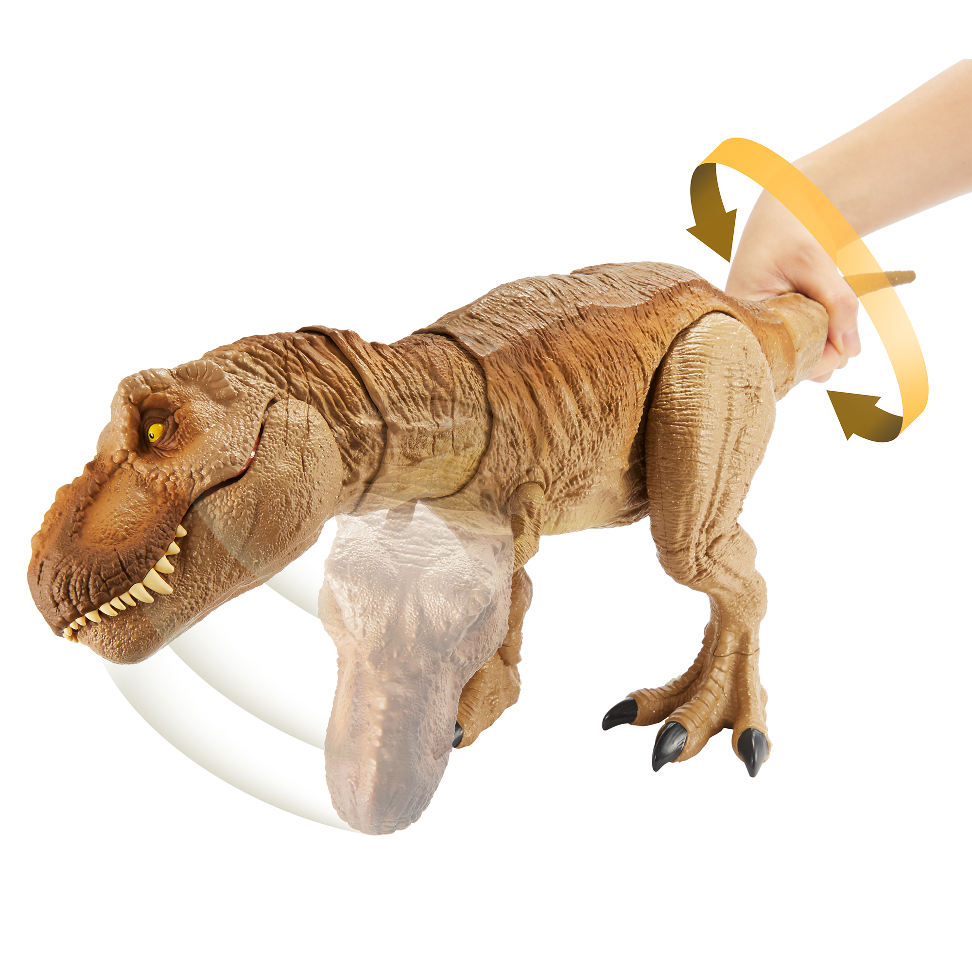| Plus produit | Cette grande figurine articulée Ultime Tyrannosaure Rex Rugissement Féroce est inspirée de la série danimation Jurassic World : La Colo du Crétacé ! § Elle a une fonction attaque qui permet aux enfants de rejouer des combats féroces ! § Bougez la queue de haut en bas, de gauche à droite ou en tournant pour animer la tête ou le corps du dinosaure et voir ses mâchoires claquer (activez tous les mouvements à la fois pour prendre le contrôle total de la figurine). § Appuyez longuement sur le bouton sur la queue pour entendre un rugissement glaçant et voir le dinosaure se secouer ! § Cadeau idéal pour les enfants à partir de 4 ans, surtout les fans de Jurassic World, de dinosaures et de jeux daction ! § Pour aller plus loin, téléchargez lapplication Jurassic World Facts (pour Android et iOS) qui permet de scanner votre dinosaure et de le regarder prendre vie en lobservant de plus près, en écoutant ses rugissements, en découvrant des informations intéressantes sur lui et plus encore ! |