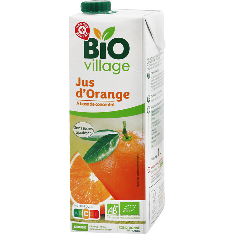 Jus d'orange à base de concentré issu de l'agriculture biologique BIO VILLAGE