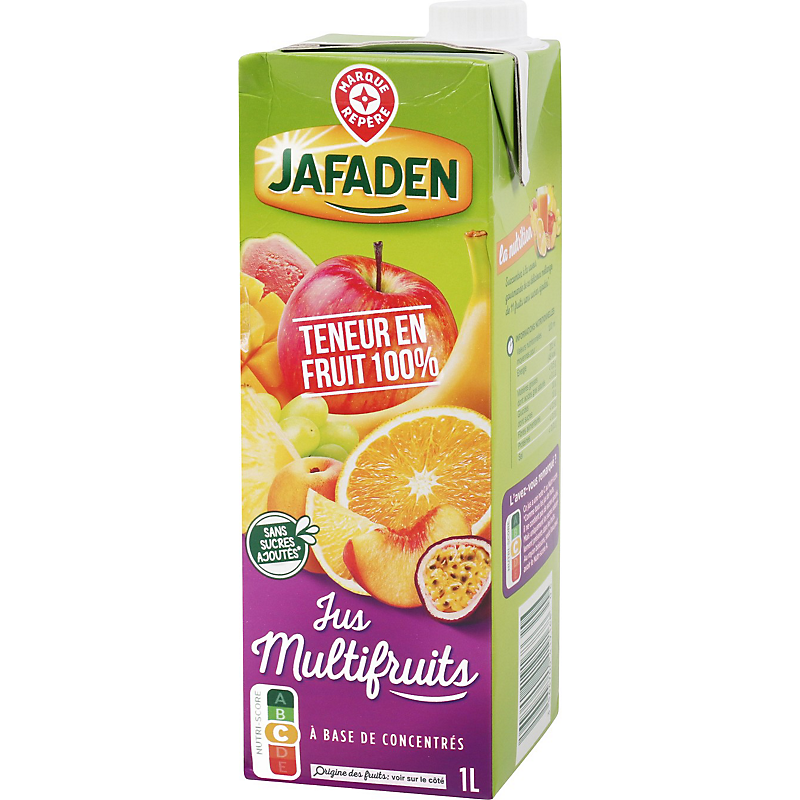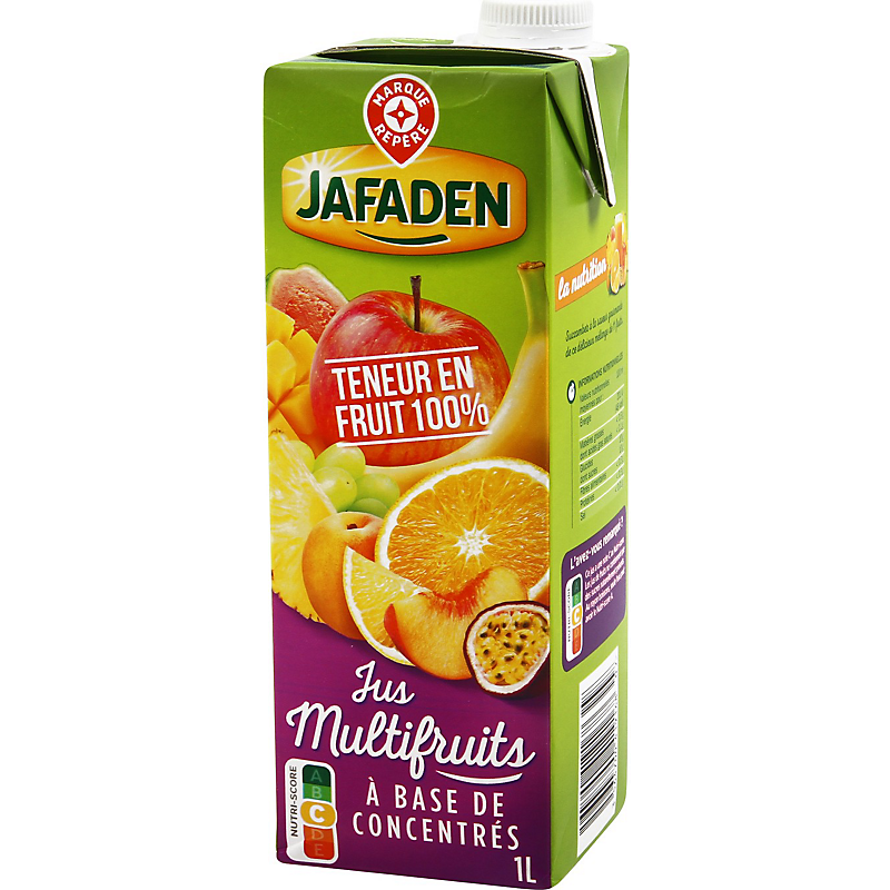 Jus multifruits à base de jus de fruits concentrés et de purées de fruits partiellement à base de concentrés. JAFADEN