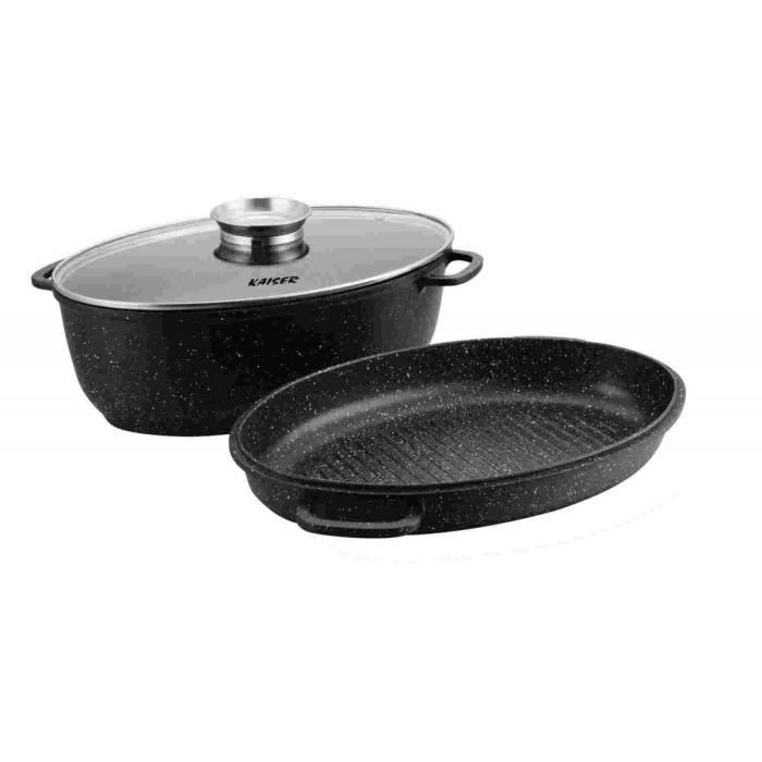 Kamberg - 0008049 - Cocotte 3 pièces 38 x 26 x 12,8 cm -Fonte d'Aluminium - Revêtement type pierre - Tous
