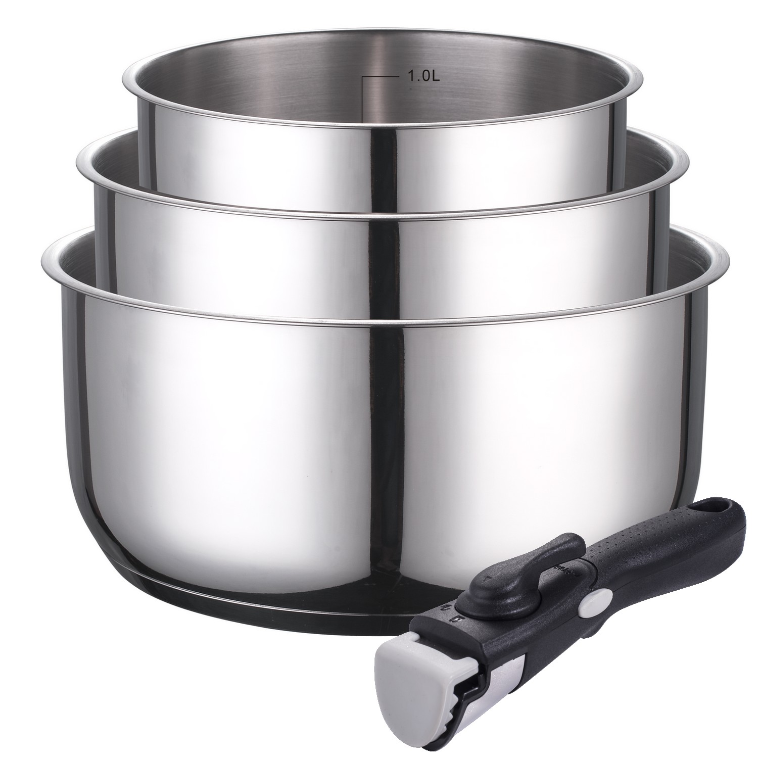 | Libellé | KAMBERG - 0008116 - Set 3 casseroles inox 16 / 18 / 20 cm + Poignée amovible - Tous feux dont induction |