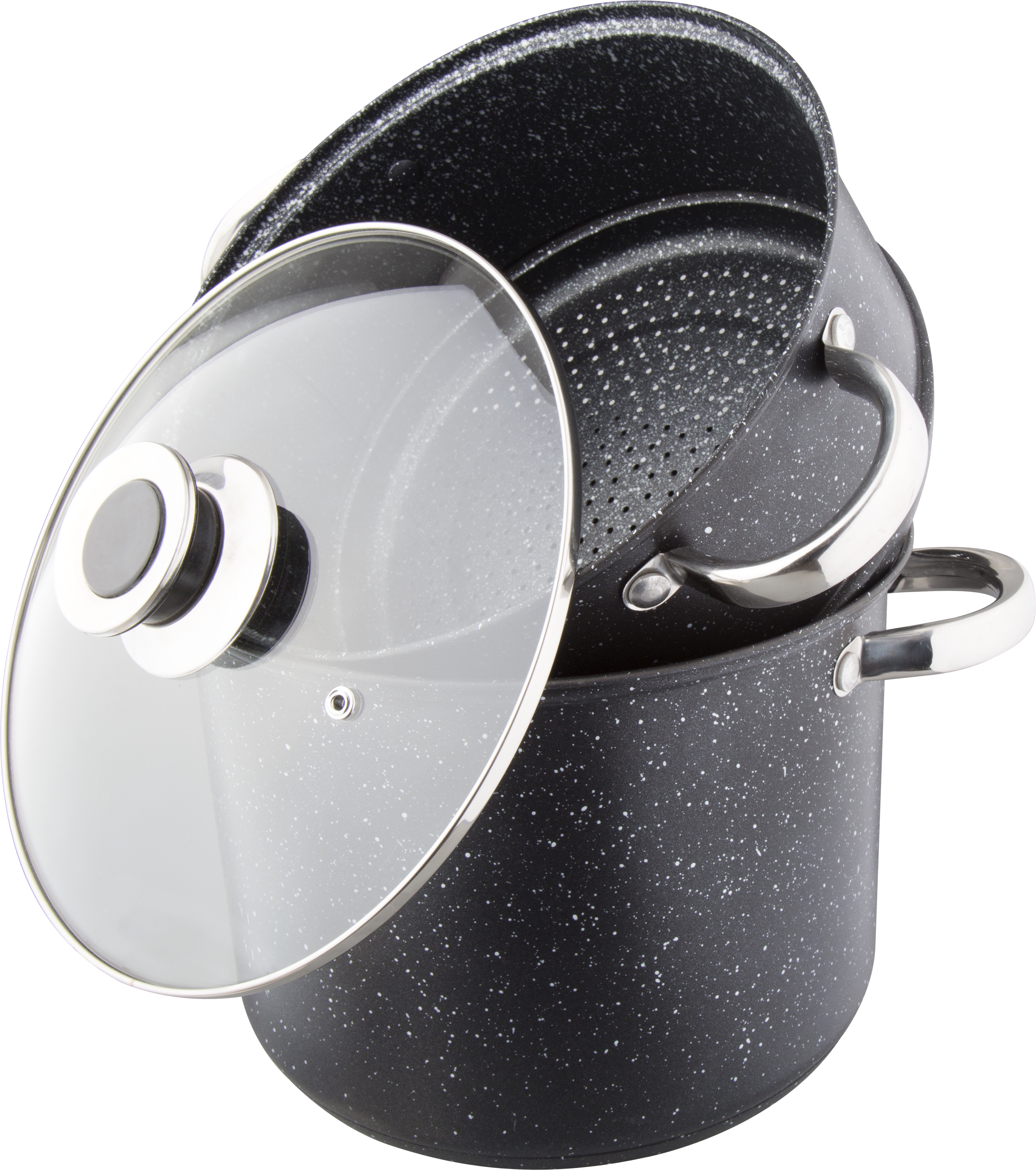 Couscoussier en acier inoxydable Haute Qualité d'une capacité de 8 Litres de marque Kamberg, avec revêtement type pierre sans PFOA intérieur / extérieur. 3 en 1 : couscoussier, marmite et cuit vapeur. La collection Kamberg est certifiée tout types de feux: induction, gaz, plaques électriques et vitrocéramiques. Acier inoxydable haute qualité. Poignées anti-chaleur rivetées. Couvercle en verre avec poignée inox. Fond 5 épaisseurs. Diffusion optimale de la chaleur. Cuisine saine et rapide. Dimensions panier vapeur: diamètre 24 cm / hauteur 12 cm. Dimensions pot : diamètre 24 cm / hauteur 18 cm.