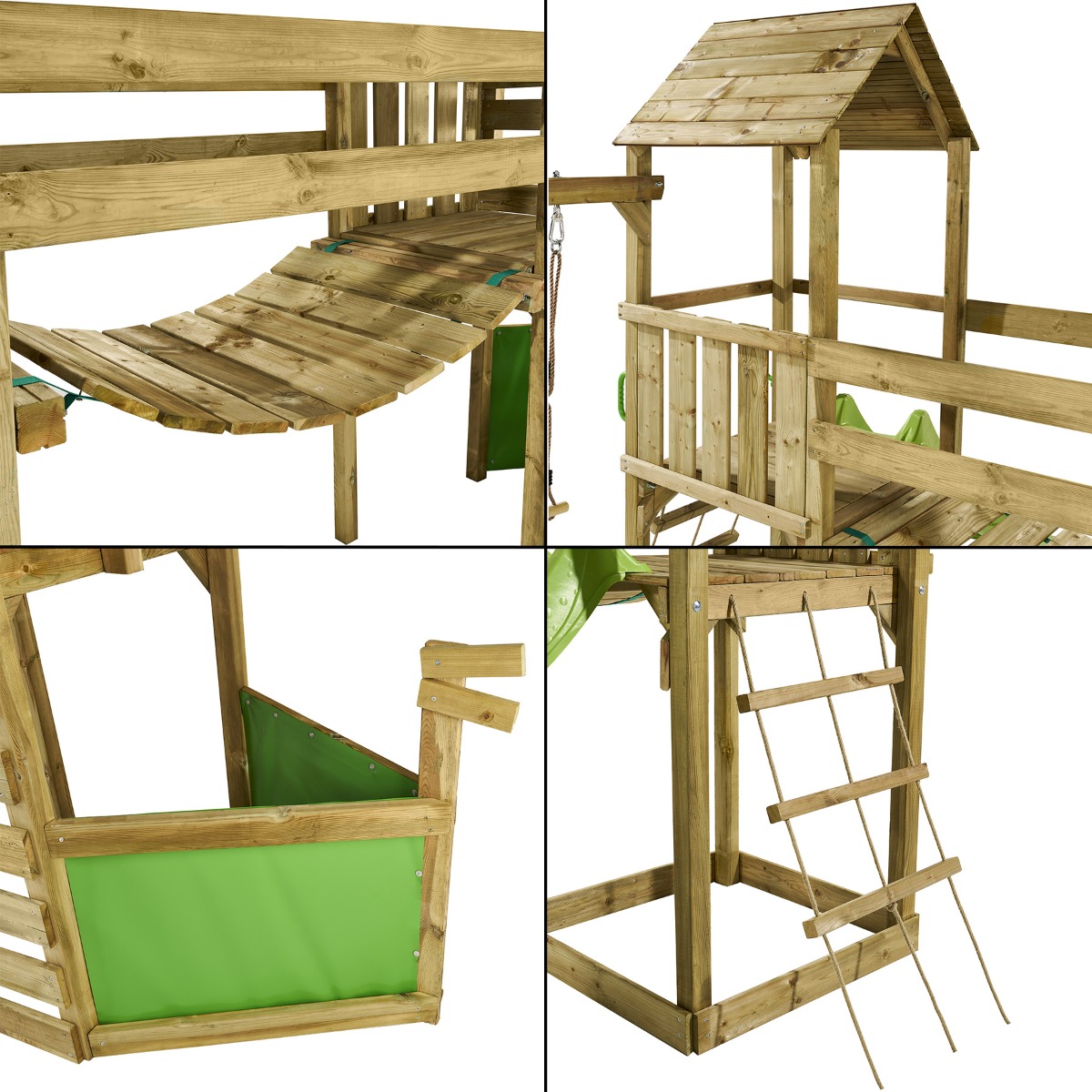 | Libellé | Kangui - Aire de jeux pirate en bois avec vigie WILLI - Balançoire, trapèze, toboggan, mur d'escalade, cabane sur plateforme, pont suspendu |
