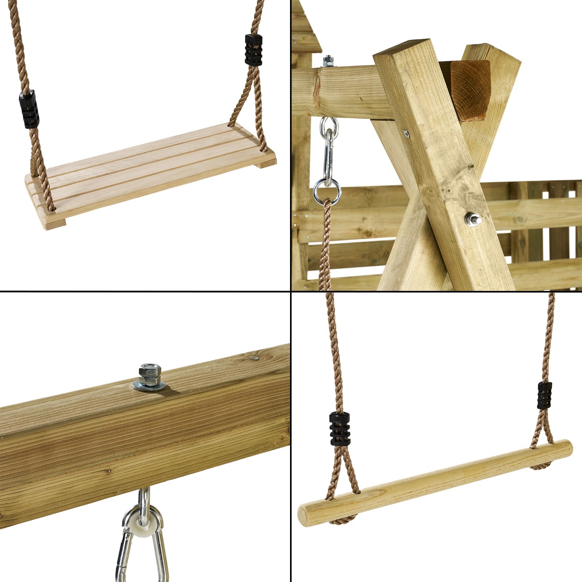 1 balançoire et 1 trapèze en bois avec cordes réglables haute qualité