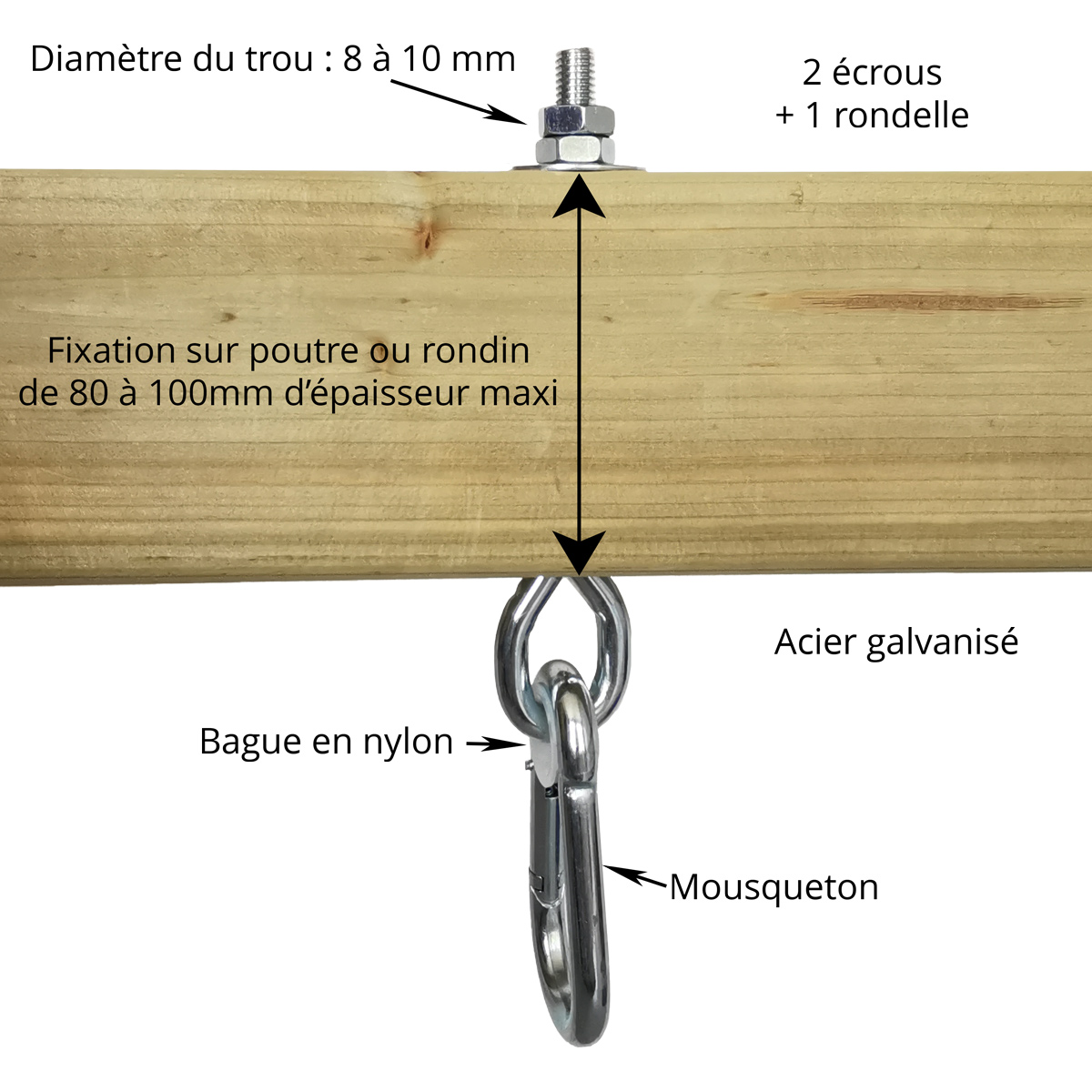 | Libellé | Kangui - Lot de 2 crochets avec mousquetons pour suspendre agrès balançoire et portiques |