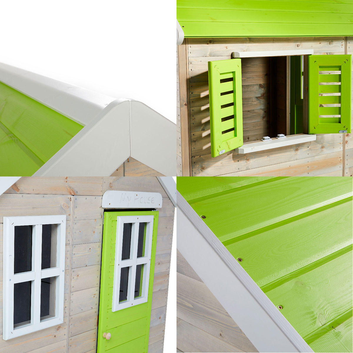 | Libellé | Kangui - Maison de jardin enfant extérieur - Cabane en Bois avec plancher - Toit étanche - Vert et Blanc |