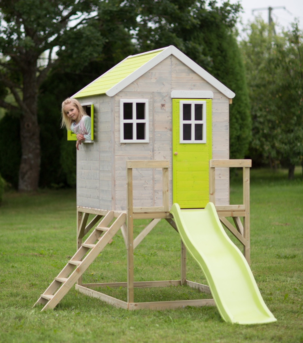 Kangui - Maison de jardin enfant extérieur - Cabane en Bois avec plateforme et toboggan - Toit étanche -